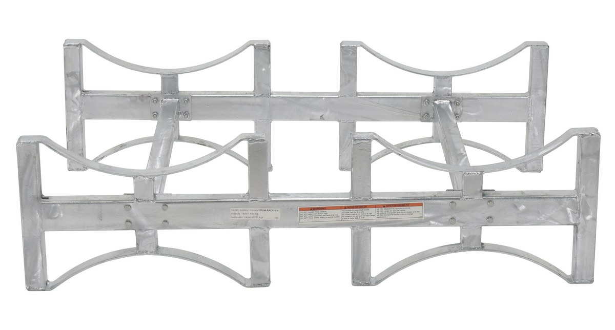 Galvanized Steel Stackable Drum Rack 2 Drum 55 Gallon 1600 Lb. Capacity GrayThis steel drum rack has four-way fork truck access. Not recommended for stacking more than four (4) racks high. All steel construction with formed steel cradles. Bolt together assembly with hardware included.