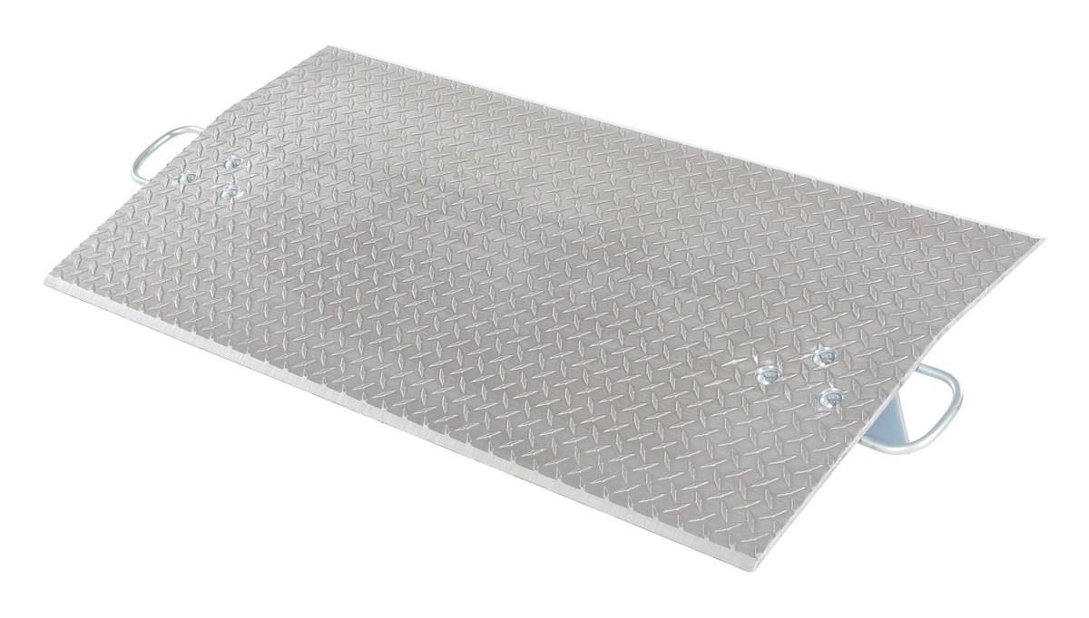 The aluminum economizer dock plate is an economical way to speed up truck loading and unloading. The unit spans the opening between dock and trailer to allow pallet or hand trucks along with traffic to safely move in and out of the trailer. The dock plate is constructed of high strength, non-skid aluminum alloy tread plate. The lightweight design with bolt on zinc plated legs and handles on each side makes portability easy. Locking legs for OSHA compliance. Not for use with fork trucks.