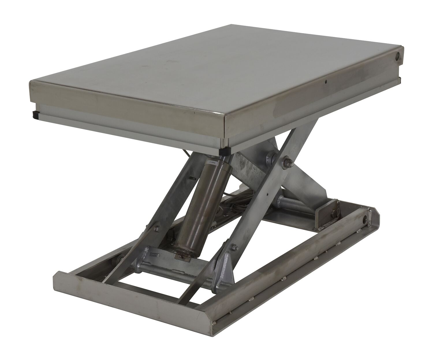 Partially Stainless Steel Work Station Electric Hydraulic Scissor Table 24 In. x 48 In. 1500 Lb. Capacity YellowThe work station electric hydraulic scissor table is designed to raise products up to an ergonomic working height. It maximizes safety with minimum space requirements and is ideal for all types of manufacturing and warehouse facilities. The external power unit can be located eight (8) feet away from the unit and comes with a standard hand control. An electric toe guard also comes standard with the unit.