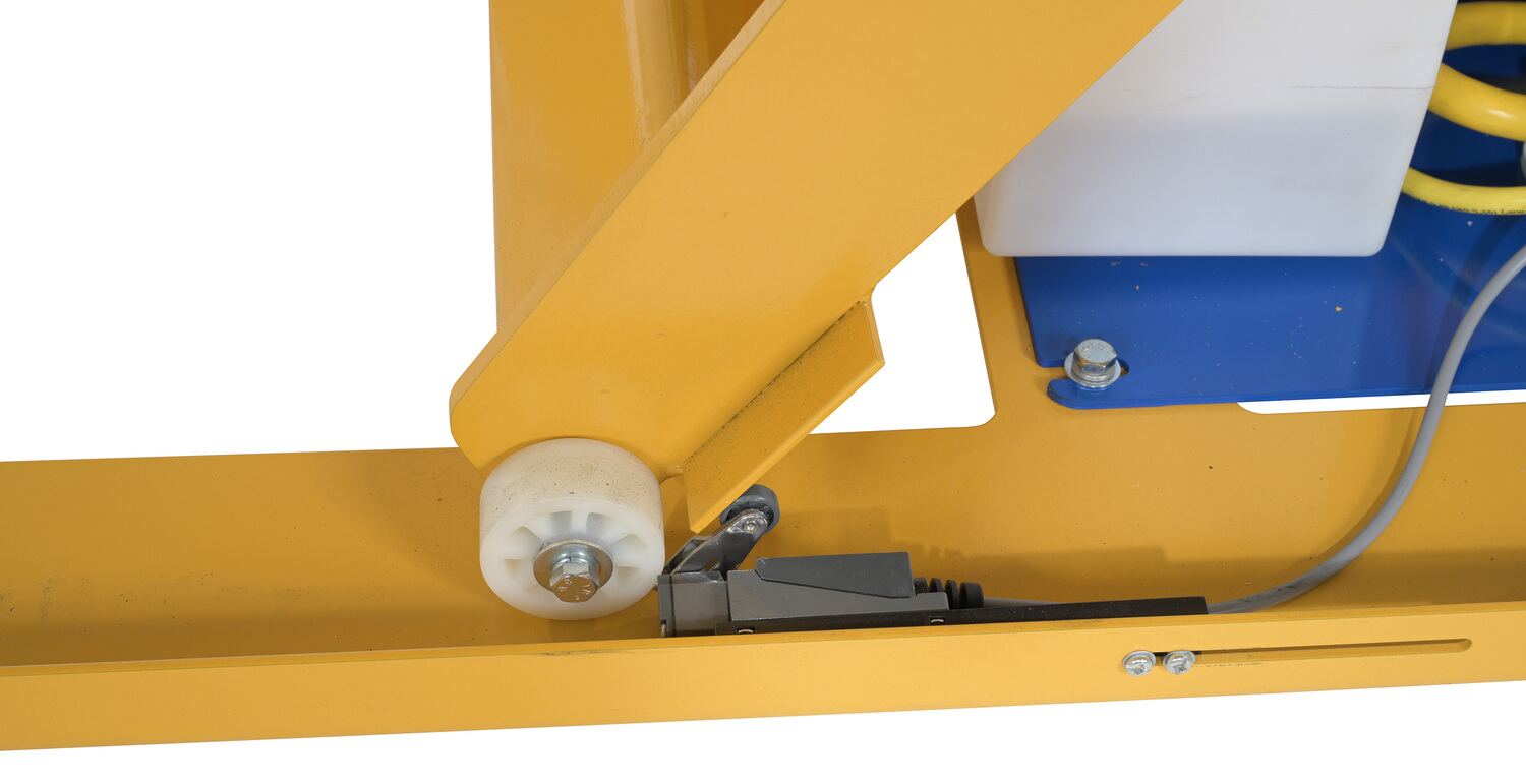 Steel Electric Hydraulic Scissor Table 40"x48" With Internal Power Unit 1,500 Lb. Capacity YellowThe work station electric hydraulic scissor table is designed to raise products up to an ergonomic working height. It maximizes safety with minimum space requirements and is ideal for all types of manufacturing and warehouse facilities. The 460V 3-phase internal power unit comes with a standard hand control. An electric toe guard also comes standard for pinch point protection.