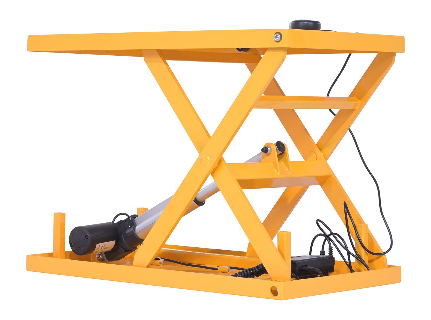 Steel Electric Linear Actuated Scissor Lift Table 27-3/4 In. x 15-3/4 In. x 15 In. 200 Lb. Capacity YellowWith user well-being always at the forefront of everyone's mind, the linear actuated lift table provides an ergonomically friendly option in an otherwise UN-ergonomic world. Due to its small size and lightweight structure the lift table works well when placed directly onto existing work benches or tables. This addition allows the user to work on small, heavy objects, at precise heights. The linear actuator not only plays an integral role in raising and lowering the table top quickly and efficiently. But, it also minimizes any platform drift, which is a common occurrence with standard hydraulic carts and tables. The unique open sided table design lets the user load and unload products without obstruction or hindrance.