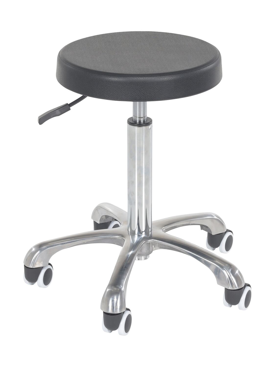 Steel/Polyurethane Ergonomic Sitting Work Stool 19 In. to 27 In. Height BlackAn Ergonomic work stool fits perfectly into a variety of workplace settings. With a steel construction, the stool is comfortable and durable and easy to clean. The height adjustment feature gives the user the ability to lower or raise the stool to the perfect position. Plastic casters are included for quick movement in the work area. Foot pads and hardware also included, assembly required.