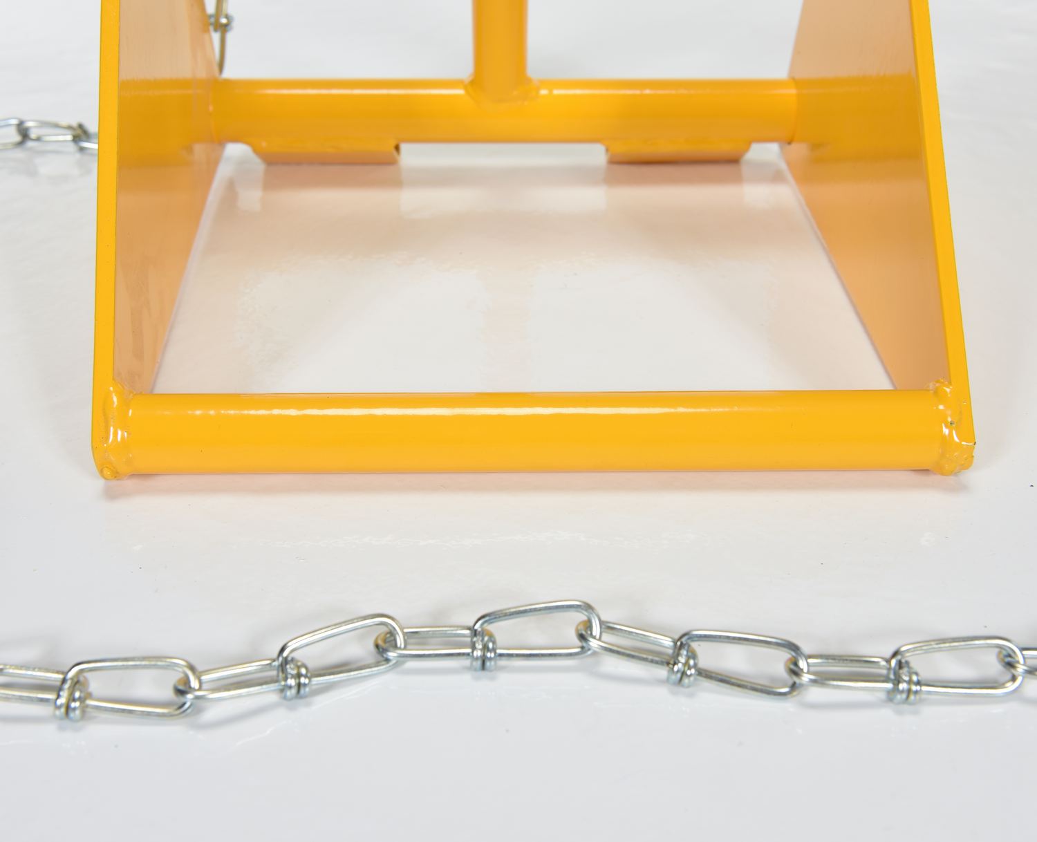 Fabricated Steel Wheel Chock With 10 Ft. Security Chain YellowThe formed steel wheel chock is perfect for on the go or at the shop. The unique design provides control for the user to securely stabilize the object at hand. The minimal weight of the chock lends itself to simple transference and maneuverability. The compact nature of the unit is great for storage when not in use.