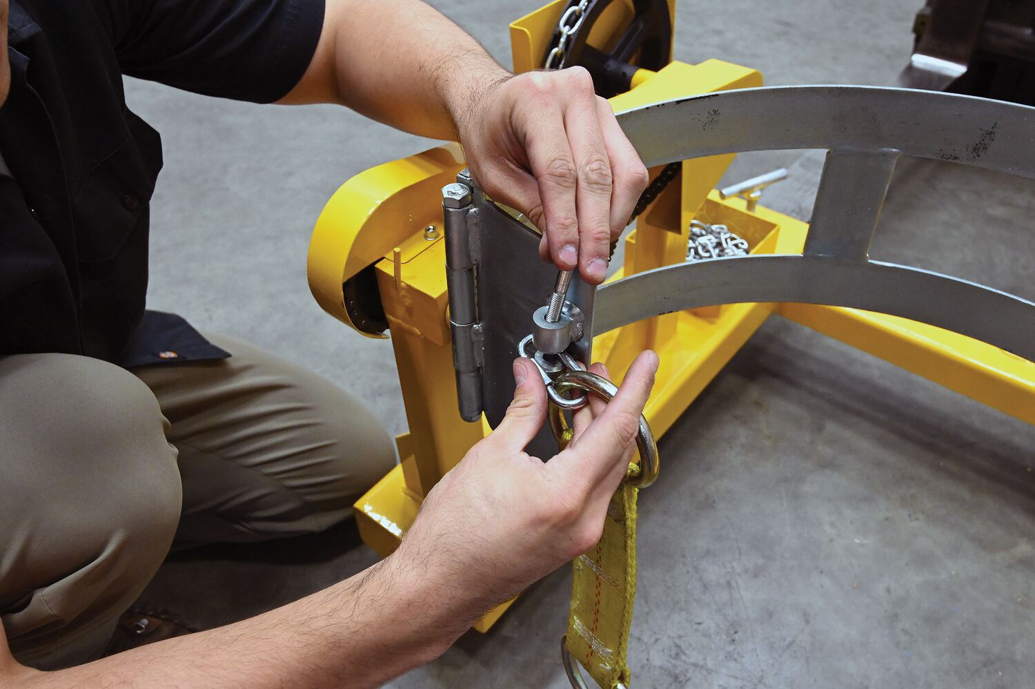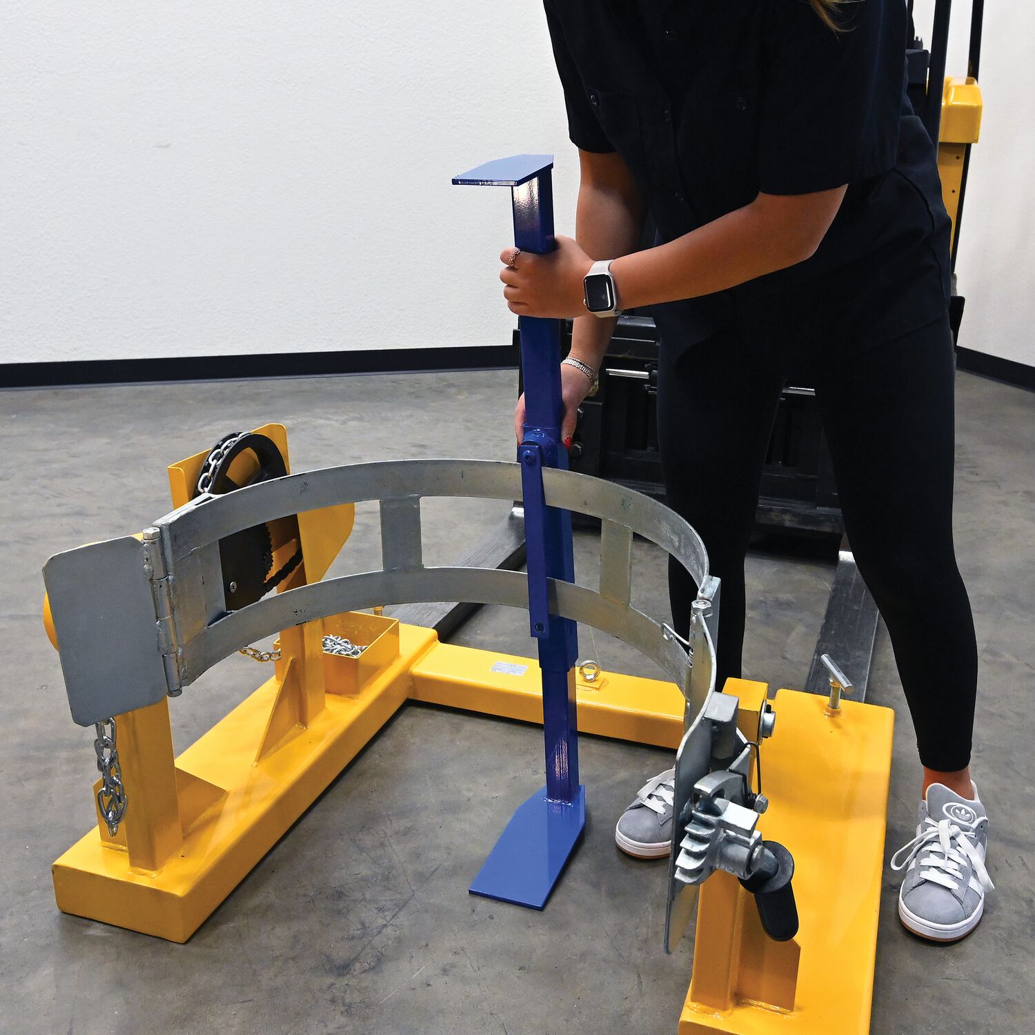 Steel Fiber & Plastic Drum Adapter Carrier/Rotator For 30 Gallon and 55 Gallon Drums BlueThis fiber drum adapter is designed to hold and support fiber and plastic drums. Comes complete with both an adjusting arm and a high strength nylon strap so thirty (30) gallon and fifty-five (55) gallon drums can be used with listed stackers and carrier/rotators.