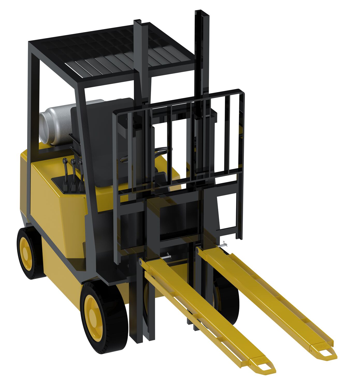Steel Pin Style Fork Extensions with Load Rails 4" X 72" 4,000 Lb. Capacity YellowLifting long, large items with standard forks can be a difficult and dangerous. To ease those burdens look for a pair of Vestil fork extensions, with tie down load rails. Let us explain the benefit of this unique style. From time to time securing items with tie downs is next to impossible. Fork extensions routinely have a smooth exterior with no built-in point to connect straps or other safety equipment. With this alternative design you will find tie down rails evenly spaced throughout the extension, giving the user the ability to pick and choose the best place to secure the load. Not only that, but the multiple rail feature eliminates the chances of the tie downs slipping or sliding beyond each segment. One of the best parts is just how easy these are able to be attached to existing forks. Simply remove the pin, lay the extension over the fork, and re-insert the pin behind the heel of the fork to secure the extension. Currently this design is only available in pin style. OSHA regulations require that extensions are no more than one-hundred and fifty (150) percent of the existing fork length.