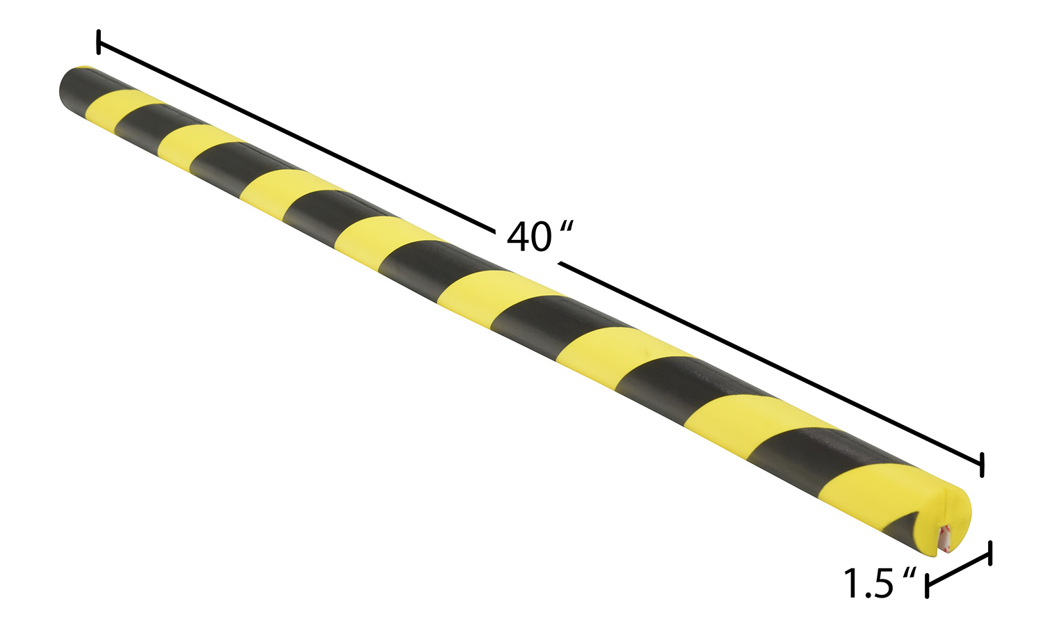 Polyurethane Foam Edge Guard 40 In. Length x 5/16 In. Slot Width Black / YellowThis versatile foam edge guard provides added protection when necessary. Each guard is manufactured from flexible foam that conforms to slightly irregular angles and surfaces. Black and yellow alert striping. Mounts with self adhesive strips. Easy to cut to custom lengths.