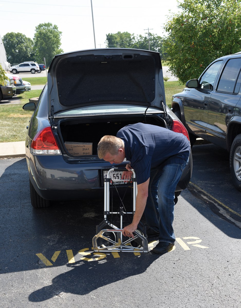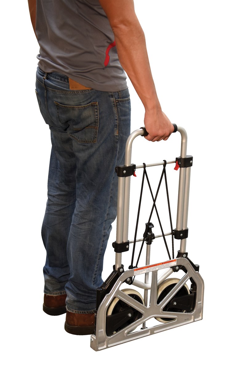 Aluminum Foldaway Hand Truck 275 Lb. Capacity SilverDesigned for everyday, all purpose use. The handle and wheels fold up quickly and easily allowing you to store it in tight spaces such as trunks of cars, under tables, or in closets.