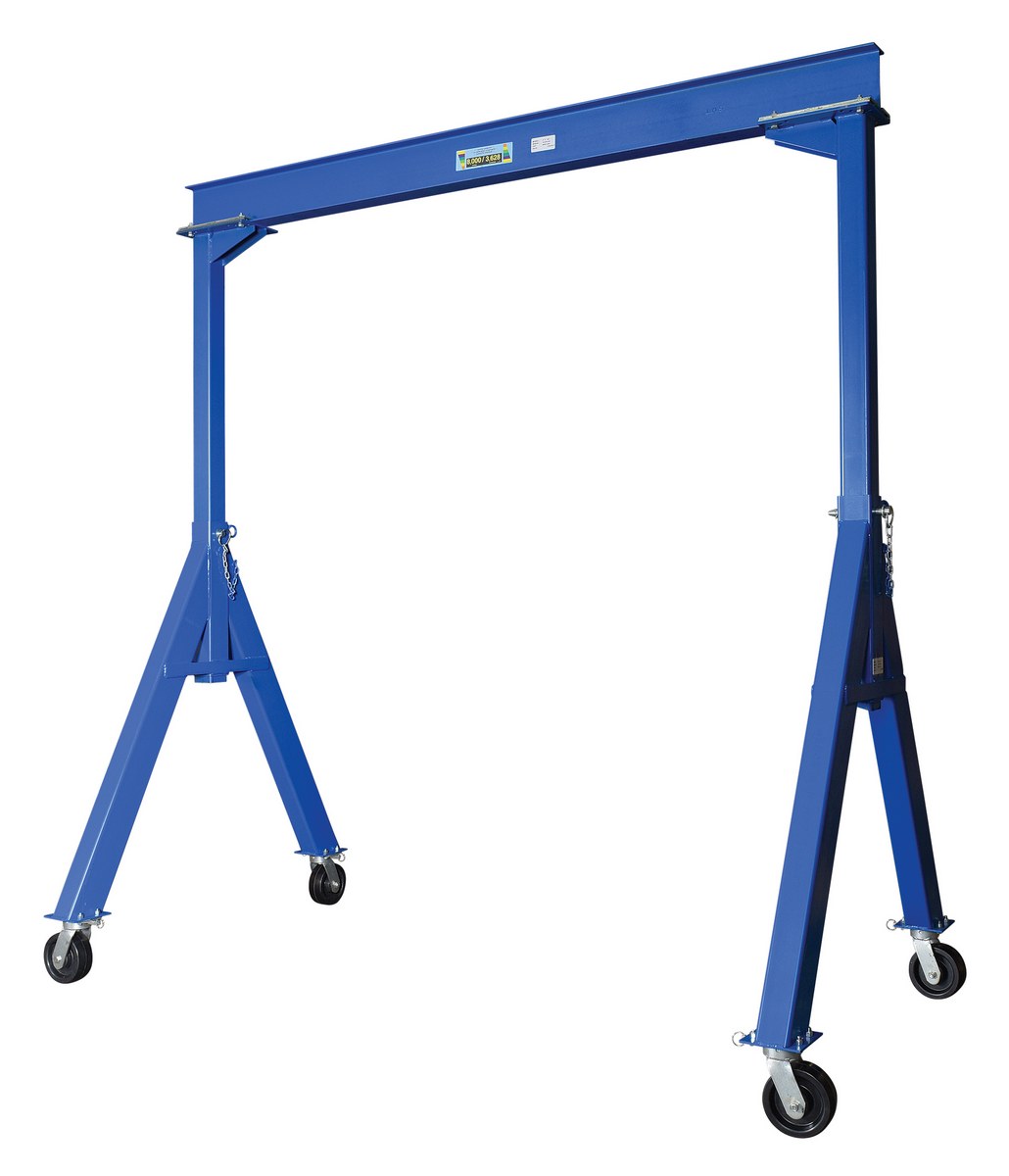 Steel Fixed Gantry Crane with Phenolic Casters 10 Ft. 8000 Lb. Capacity BlueThe fixed height steel gantry crane is designed for transporting and positioning materials along the beams length. The solid steel construction will provide years of service, while the painted blue finish will keep the models protected from surface ware. The rigging locks in 1 of 4 positions; you can set the wheels and push the gantry crane forward, back, left or right. The unit is an economical and efficient way to lift and raise products, diminishing the need of additional personnel. The fixed height design allows for constant use in a particular setting without the need to maneuver the overall height of the unit.