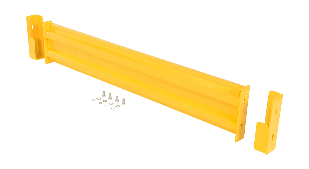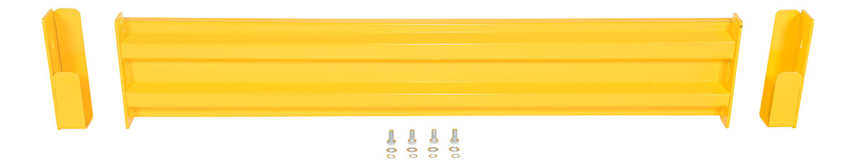 Steel 2 Ribbed Drop In Style Guard Rail 54 In. Length YellowProtecting equipment, inventory, and most importantly individuals from damage or injury is always a concern. But, with a structurally strong steel guard rail those worries can be eased. This rail is double ribbed for impact resistance both indoors and out. With the drop-in style rail design, accessibility is simple and rails can be positioned quickly. To put in place simply slide the rail sections into the post saddles. Powder coated finish for built in added toughness. Additional posts are available and sold separately. If adding a rail to an existing rail and post section, only a single post is needed.