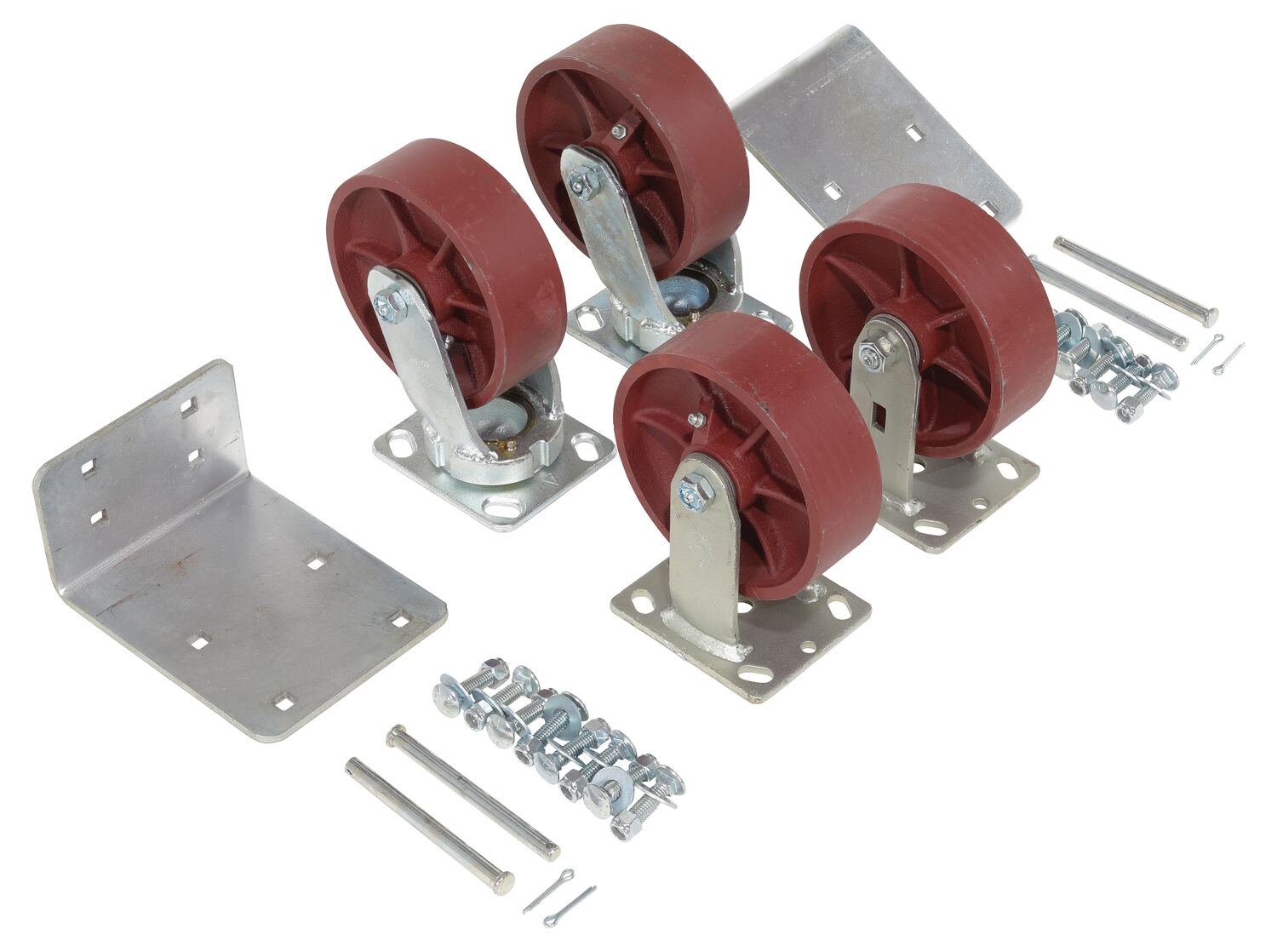 Ductile Steel Caster Kit 6 In. x 2 In. 8,000 Lb. Capacity MaroonCasters for the self-dumping hoppers create a more worthwhile portable unit. Casters are constructed of glass filled nylon for strength and durability throughout a lifetime of use. The high capacity allows the simple transport of heavy loads promoting task efficiency. Casters are bolted-on by utilizing the factory stamped hole in the fork tubes.