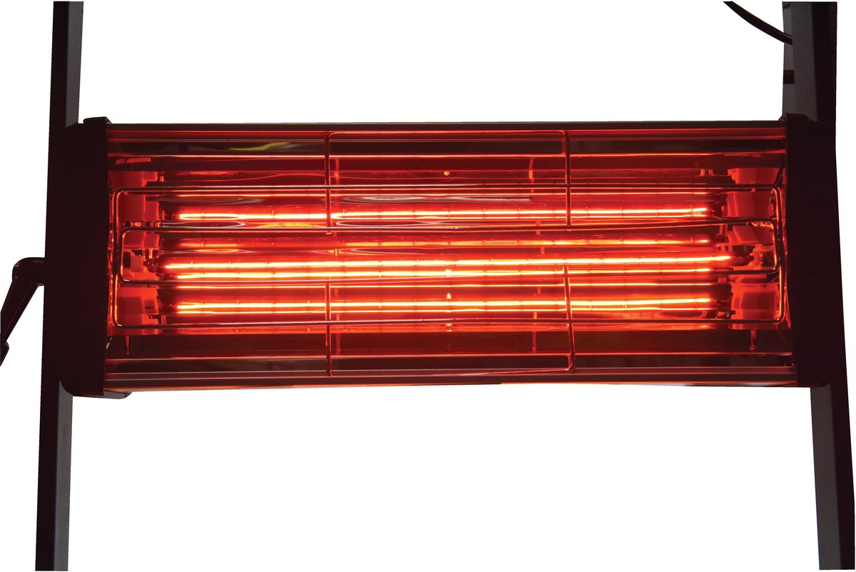 Steel Infrared Heater 3 Panel 230 Volt 1 Phase Black/SilverAn infrared heater provides beneficial warmth to a variety of industrial areas. A simple to use control panel allows the function and heat settings to be utilized in the best possible way for maximum efficiency. An adjustable heater arm gives the user the ability to maneuver the heating elements into a position that best fits the type of surface that is being heated. Unit includes casters to easily maneuver the unit to and around the work area. A robust structural construction endures work place conditions that are continually changing.