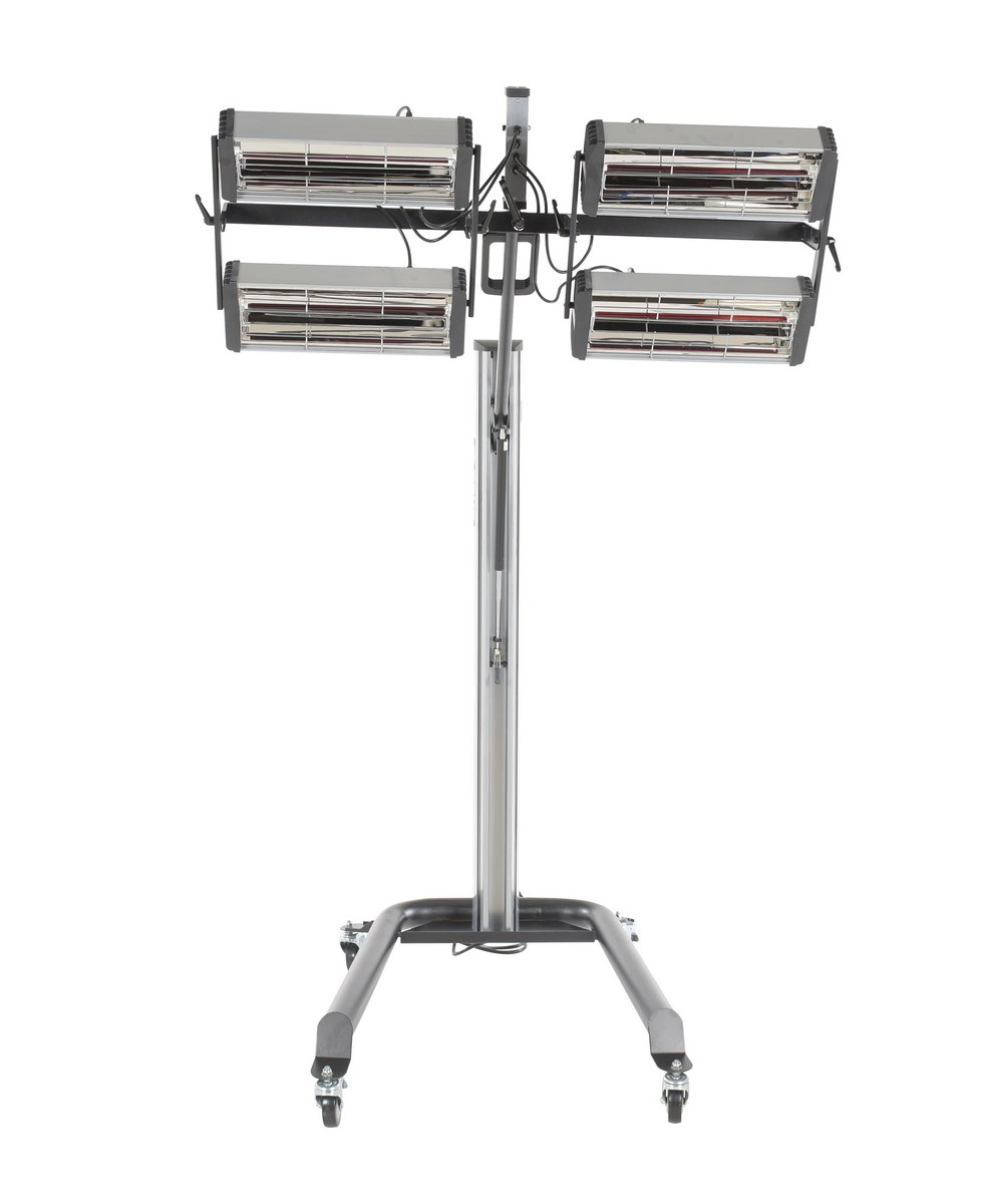 Steel Infrared Heater 4 Panel 230 Volt 1 Phase Black/SilverAn infrared heater provides beneficial warmth to a variety of industrial areas. A simple to use control panel allows the function and heat settings to be utilized in the best possible way for maximum efficiency. An adjustable heater arm gives the user the ability to maneuver the heating elements into a position that best fits the type of surface that is being heated. Unit includes casters to easily maneuver the unit to and around the work area. A robust structural construction endures work place conditions that are continually changing.