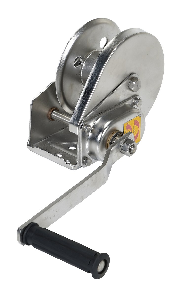 Stainless Steel Hand Winch 1200 Lb. Capacity SilverThe Stainless Steel hand winches are constructed of 304 stainless steel for corrosion resistance. Machine-cut spur gears ensure smooth accurate operation, while protective gear covers keep dirt out and help prevent worker injuries. Winches feature a drum clamp for easy attachment of wire rope (not included) and an automatic brake for positive load control during lifting and lowering operations.