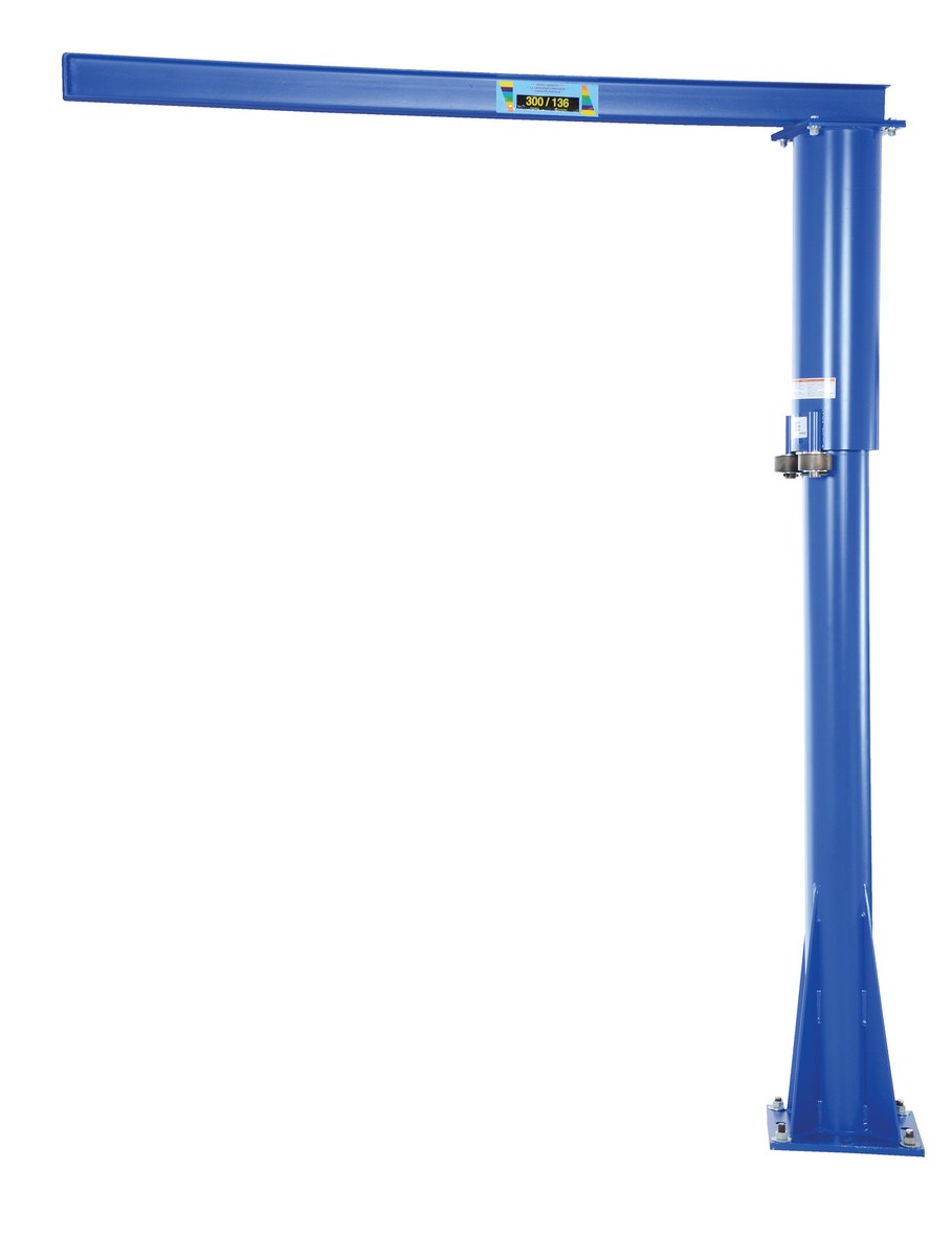Steel Floor Mounted Jib 80 In. I-Beam 300 Lb. Capacity BlueThis floor mounted jib adapts well to a variety of applications. With the unique design, the jib is functional in any direction for complete customization of the work station. Solid steel construction will assist workers in lifting awkward material. Hoists & Trollies can be ordered separately.