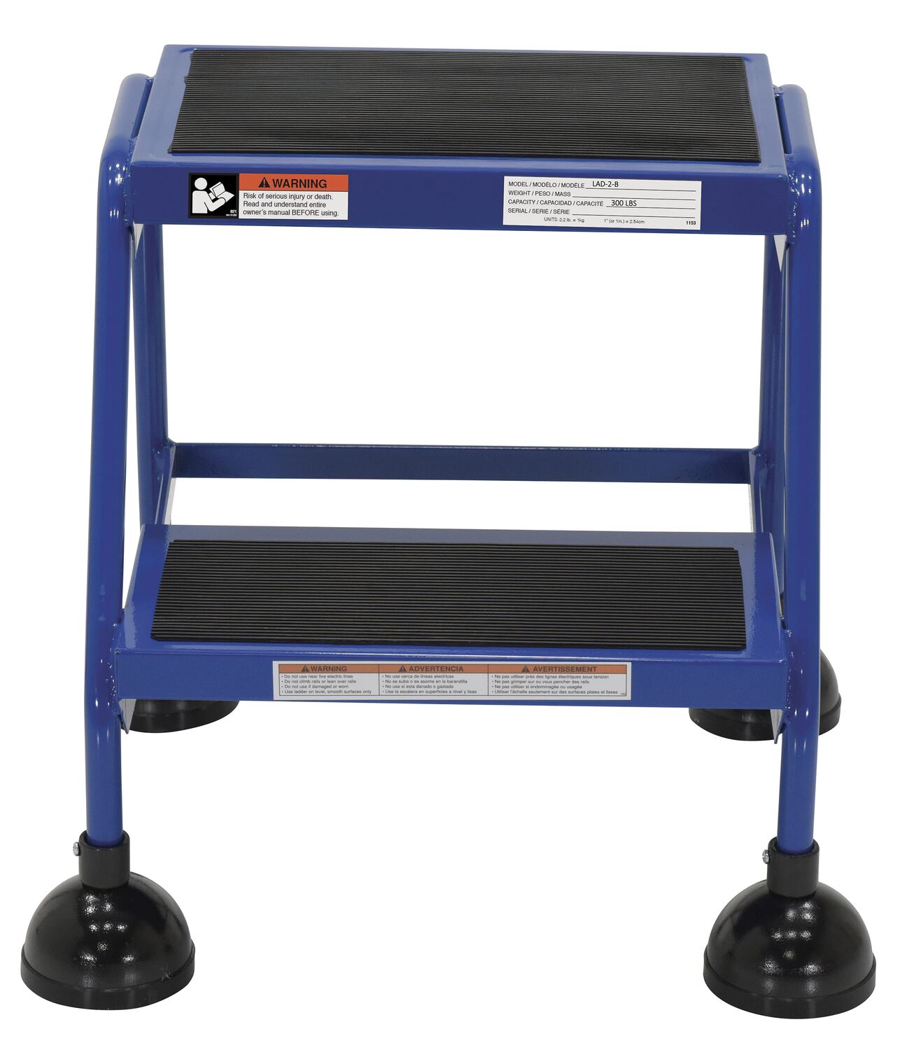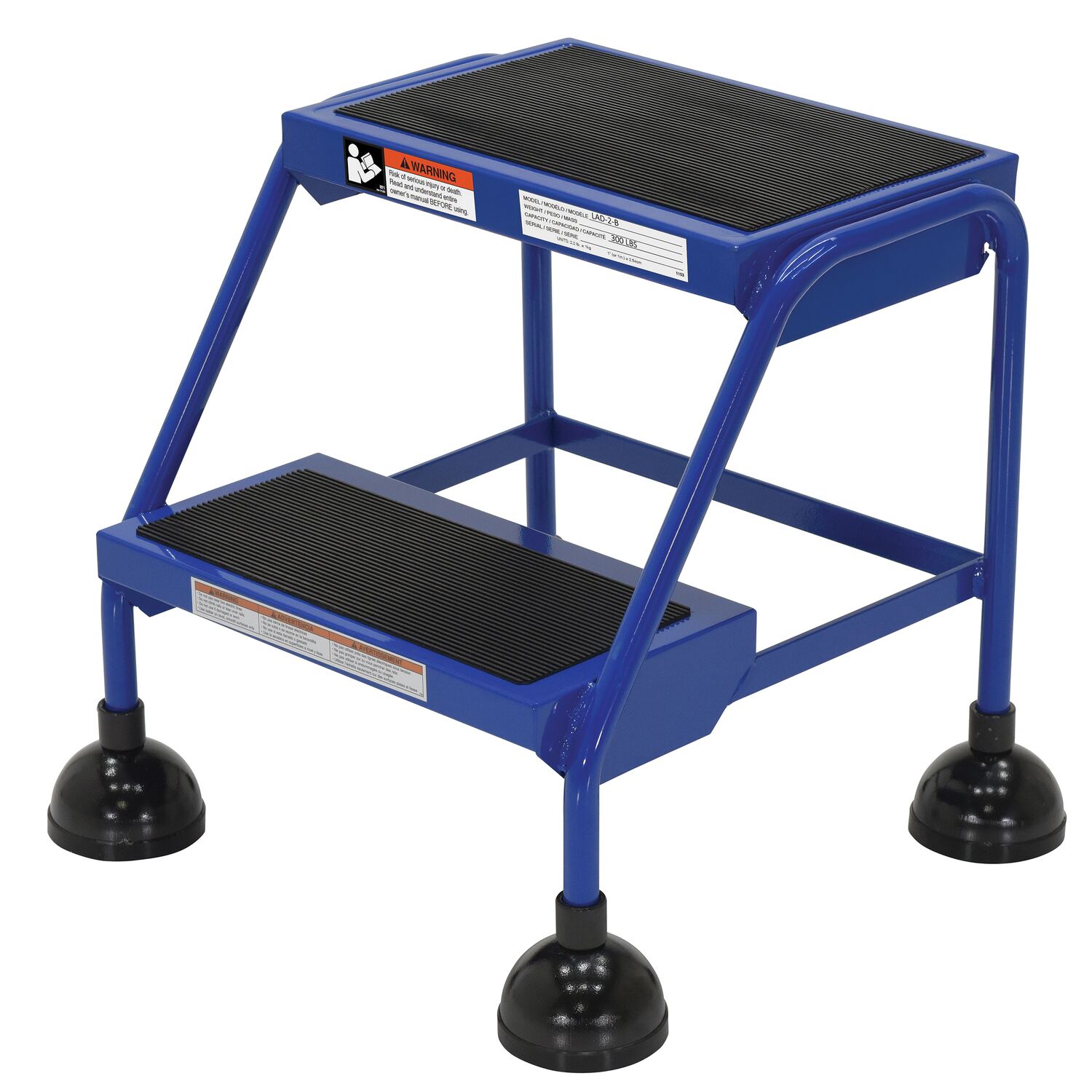 Steel Commercial Spring Loaded Ladder 2 Steps 16 In. Wide 58 Degree with Anti-Slip Rubber Mats 300 Lb. Capacity BlueCommercial users of rolling ladders now have an attractive and economical alternative to the traditional warehouse rolling ladders. This commercial spring loaded ladder has a sleek design, also provides maximum safety and convenience. The all directional spring-loaded swivel casters feature steel dome protection which includes rubber pad bottoms to minimize movement. The powder coat finish provides a durable attractive appearance.