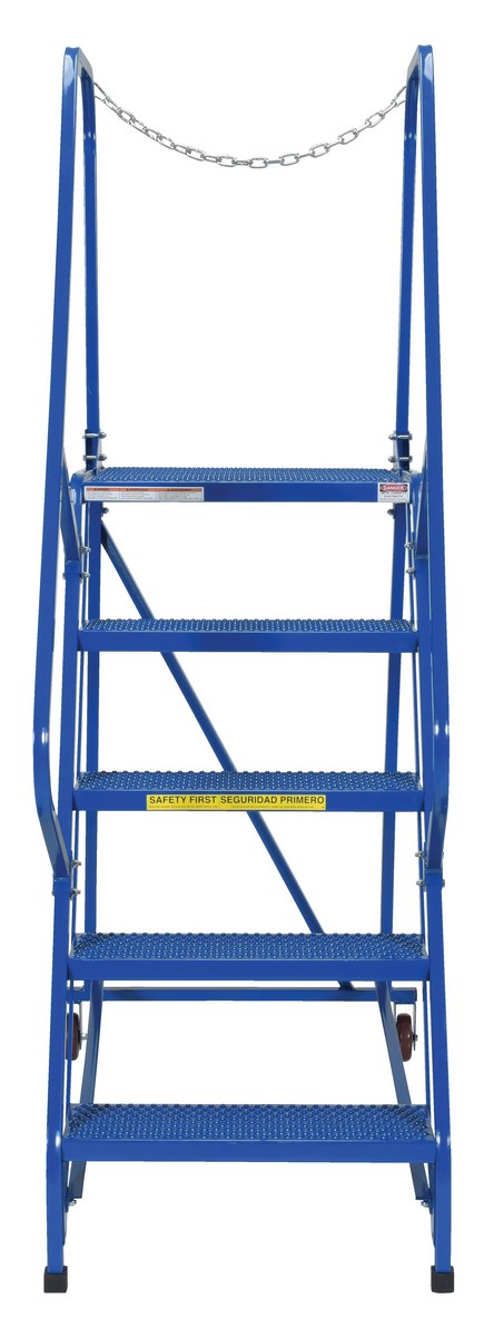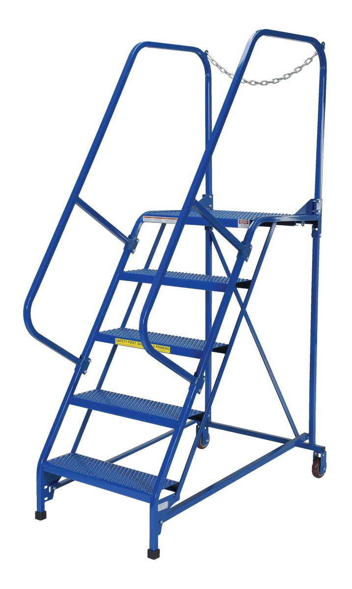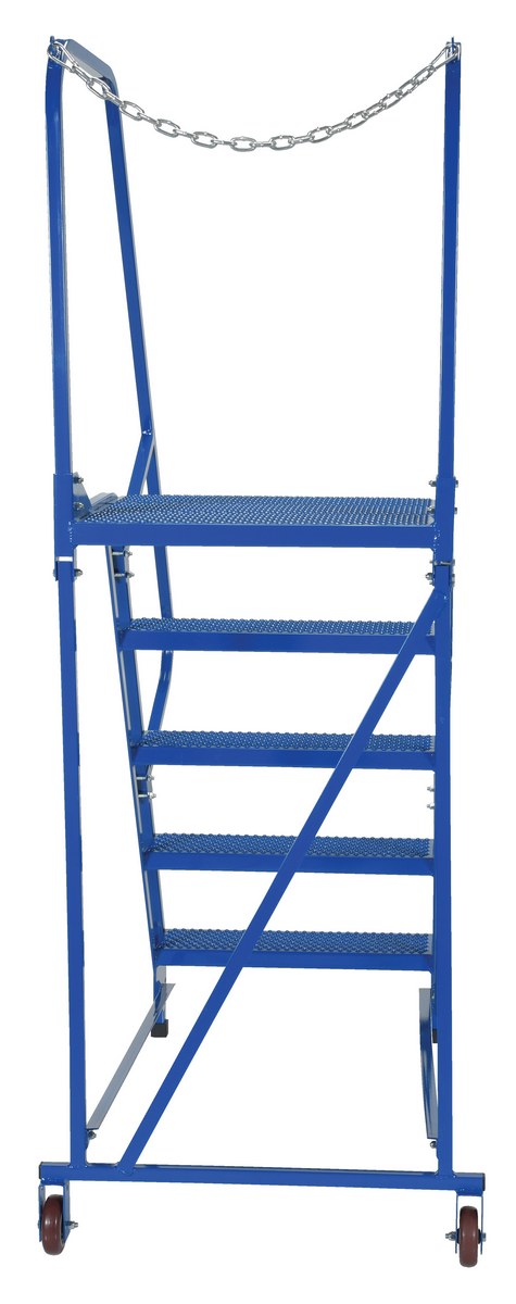 Steel Maintenance Ladder 58 Degree 5 Perforated 24 In. Step Width 350 Lb. Capacity BluePortable maintenance ladder for use around a variety of stores and inventory rooms. Constructed of square tubing framework, which handles uniform capacities up to 350 lbs. hand railing provides user safety while ascending or descending the unit. Distance between steps is 10". Powder coated finish for baked in added toughness.
