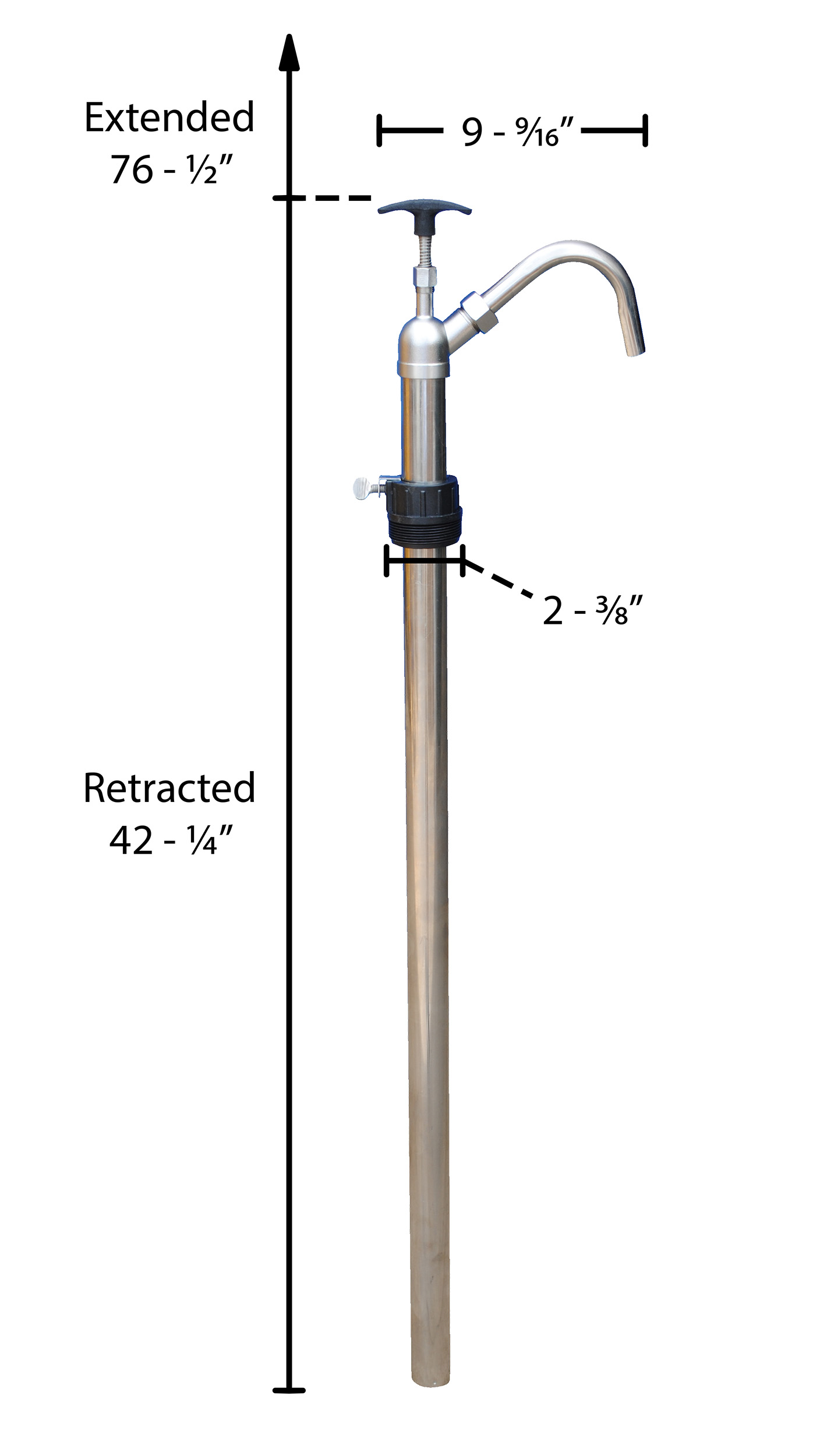 | Accommodates: 55 gallon drum | Displacement per Stroke (oz.): 16 | Bung Size (in.): 2 |