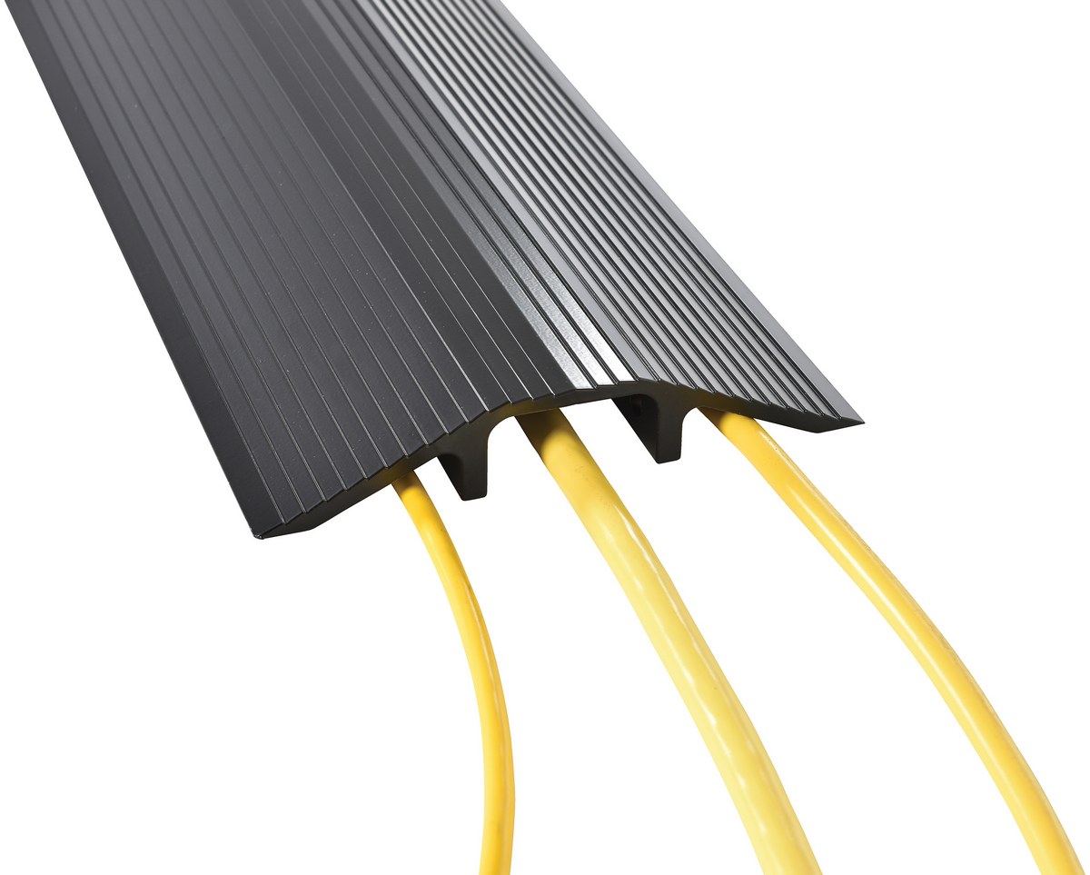 Aluminum Hose and Cable Crossover 36 In. Length 10,000 Lb. Capacity BlackThe Extruded Aluminum hose and cable Crossover is designed to protect air lines, electrical cords and computer cables from damage by fork trucks, carts, and personnel. This ramp has serrated edges for maximum traction and are lightweight for easy portability.