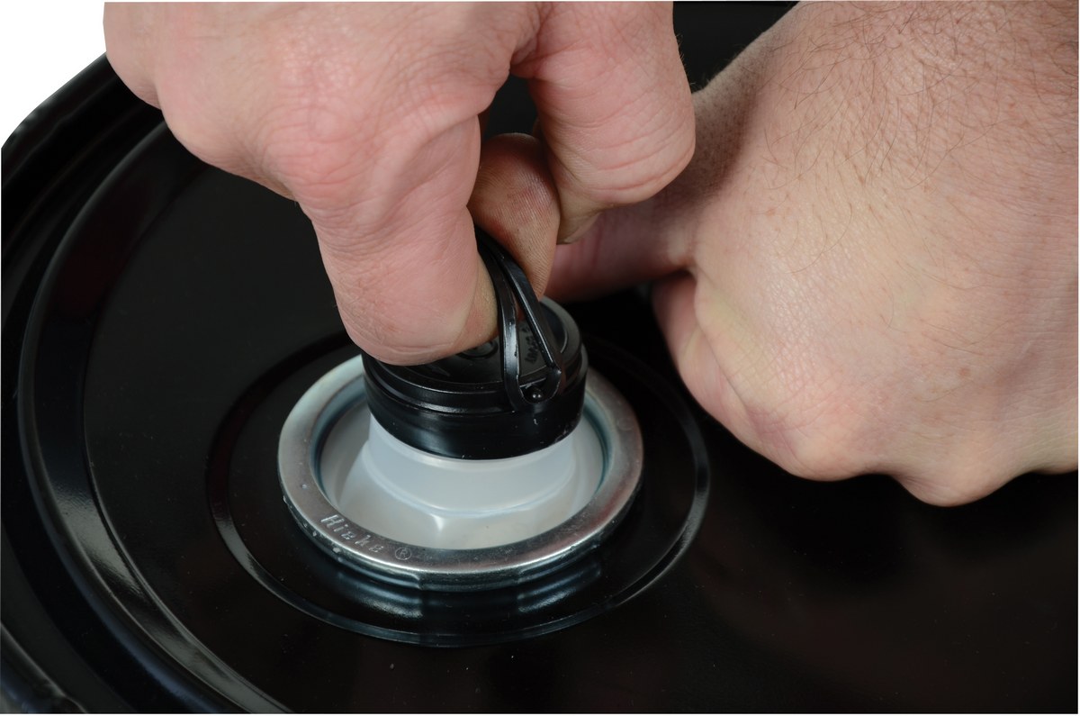 Steel UN Rated Spout Top Lid 5 Gallon BlackSteel lid for use with steel pail. UN rated with spout.