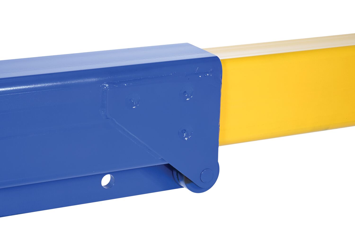 The DC powered telescoping boom has all the benefits of the standard lifting boom, except now it has the capability of being powered. The DC powered design includes a power unit housed between the fork tubes and the outer boom. By using the handheld controller the boom can be extended or retracted. The hand held controller connects to the power unit via a pigtail cord. Painted for a smooth finish and to limit abrasion. Includes two (2) lifting hooks.