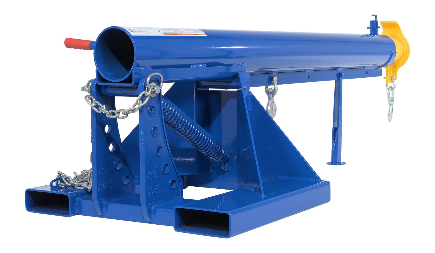 Unique performance, convenience, and safety features are built into every lift master boom. Fabricated from structural steel with welding to meet AWS creates a rugged and durable boom that will provide long term service. This unit features a locking detest. A safety restraint secures the boom to the fork truck for safe operation. Includes two (2) lifting hooks.