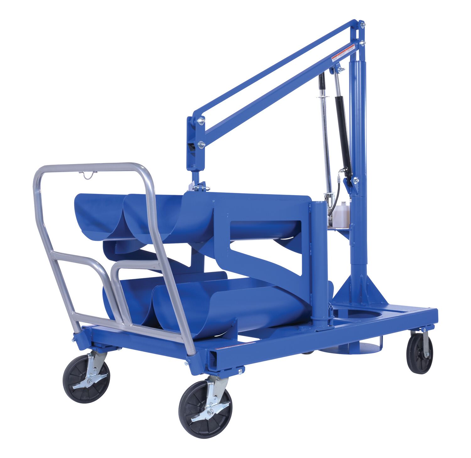 Steel LP Tank Truck 136-7/16 In. x 33-13/16 In. x 94-9/16 In. 6 Tank Capacity BlueFinally an easy answer to lifting, storing, and transporting problems associated with LP tanks. This all-in-one LP tank truck allows users to transport LP tanks where needed. The built-in crane can be used to safely load full tanks into fork trucks. The crane pivots for maximum versatility. The crane boom is raised and lowered with a manual hand pump hydraulic lift. The tank attachment at the end of the boom automatically clamps to each end of the cylinder. The built-in racks are ideal for LP tank storage-racks. Store two (2) tanks in the vertical position and four (4) tanks in the horizontal position. Truck includes a push handle with casters for portability.