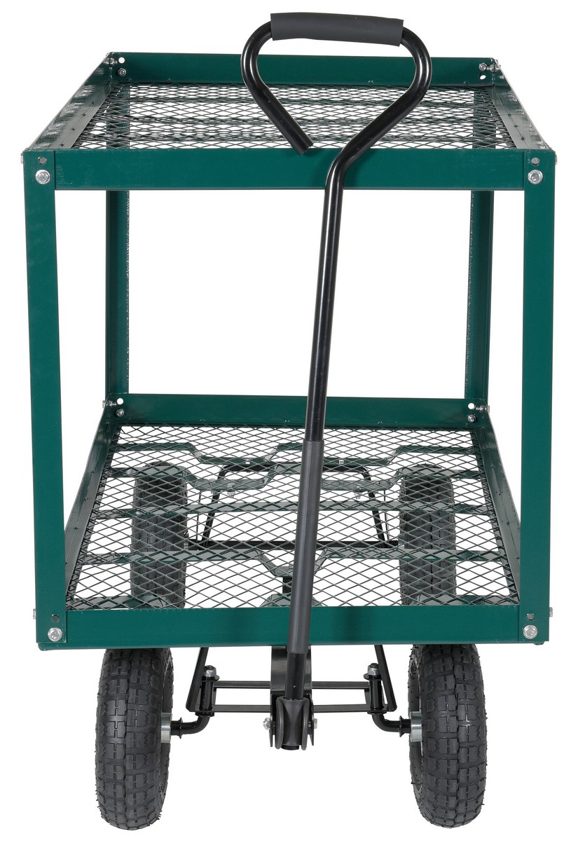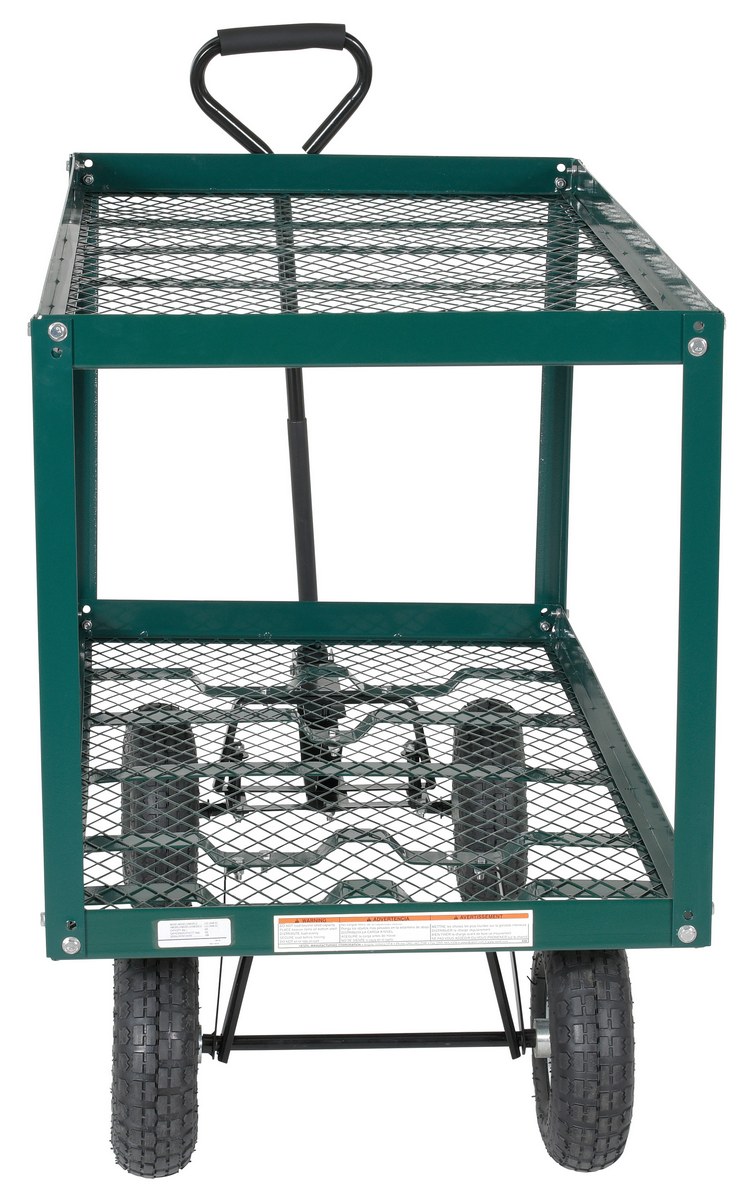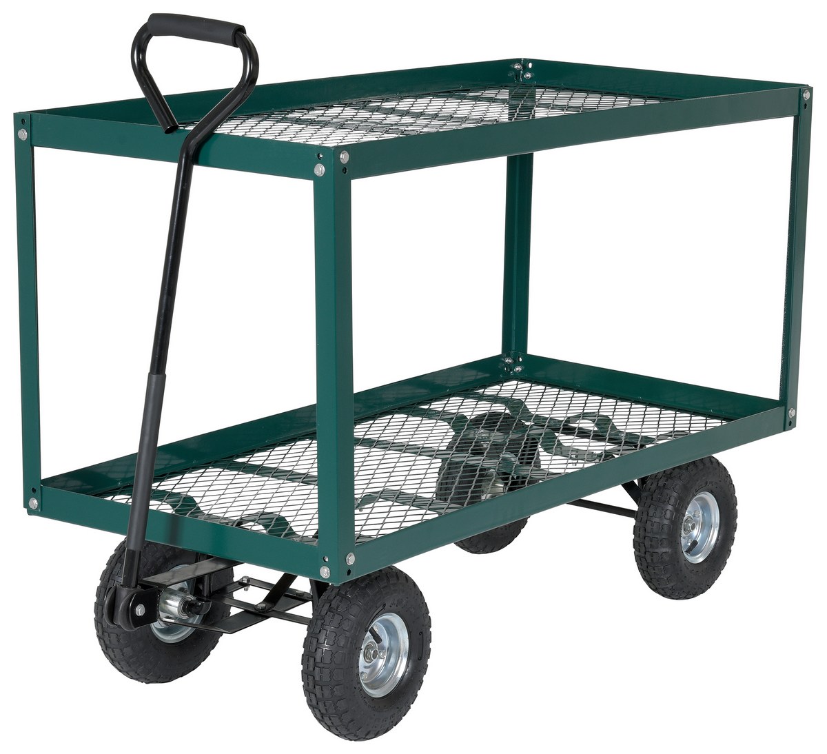 Steel Landscape Cart with Two Shelf 51 In. x 24 In. x 36 In. 300 Lb. Capacity GreenTransport plants, flowers, trees, shrubs, rocks, and similar materials or parts with this landscape, nursery & agriculture cart. The cart is rugged and easy to maneuver with their large pneumatic tires. This cart has mesh bottoms to allow dirt, small rocks, and water to drain through.