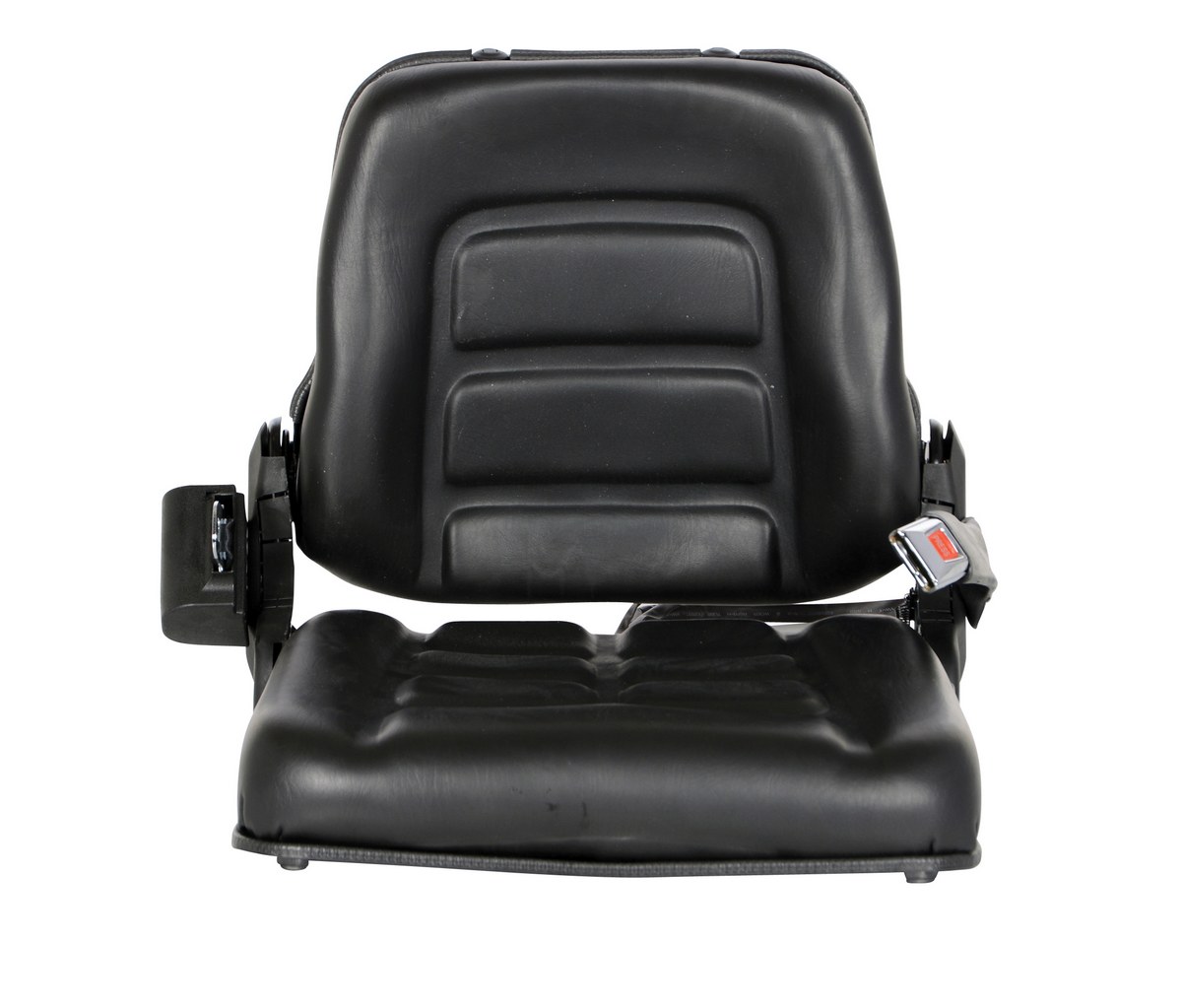 The Fork Truck seat has an ergonomic and comfortable seat design to help provide optimum body support for individual operators. Replace worn or broken fork truck seats with our easy to install universal mounting design. Standard features include: ergonomic seat design, vinyl material, low profile design, safety seat switch, seat back angle adjustment, and retractable safety belt.