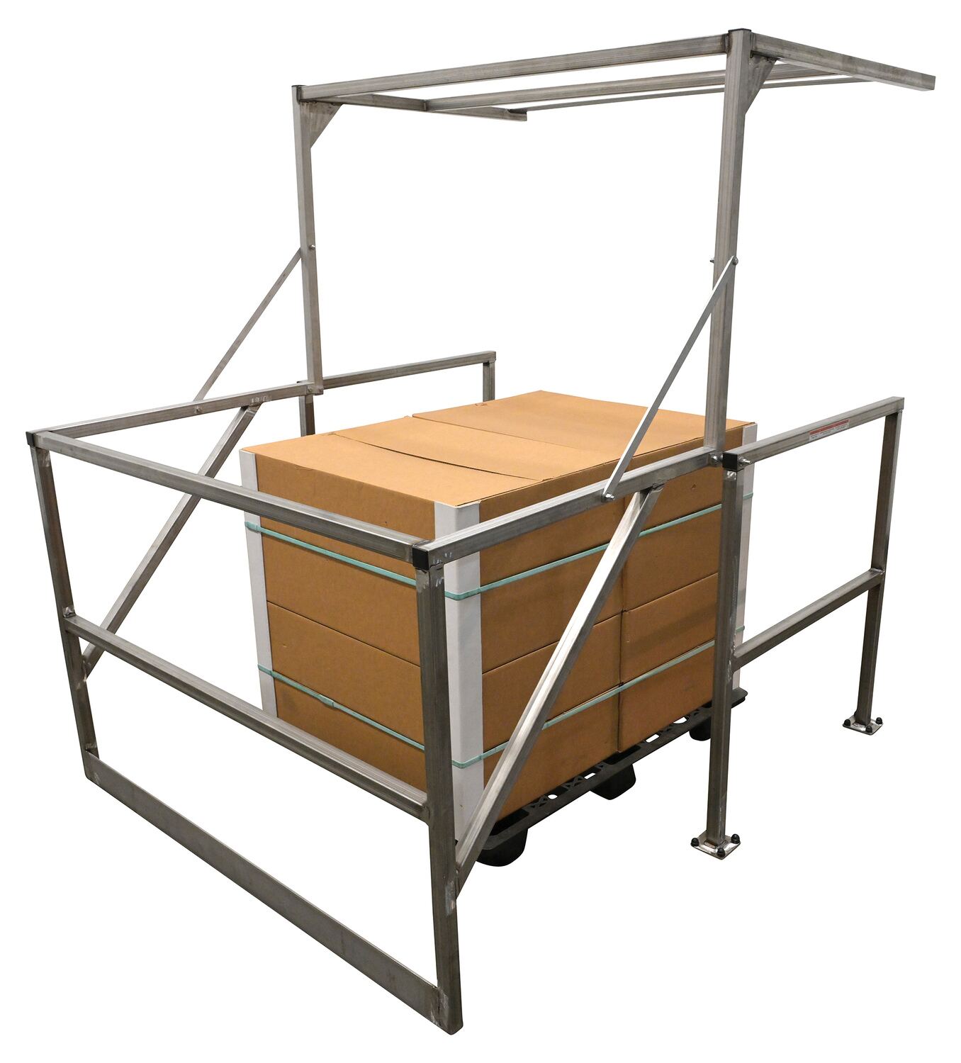 The mezzanine safety gate provides an OSHA required handrail, mid-rail and kick plate for mezzanine without sacrificing load accessibility. To accommodate the maximum load height, when utilizing a standard pallet, load positioning within the gate is critical. For greatest amount of clearance and item placement flexibility, shorter loads are recommended. The gate rotates and design is balanced to allow for easy operation without use of springs.