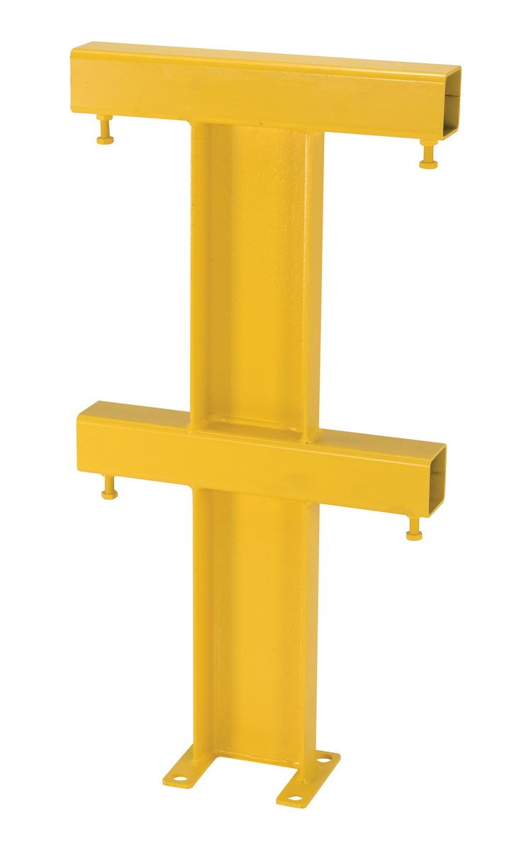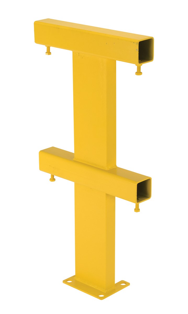 Steel Modular Guard System Straight Post 2 Rail 7-5/8 In x 18 In. x 36 In YellowModular guard system can be ordered to fit almost any application. Designed for quick and easy assembly. Railing sections are installed and secured to each post with a single bolt. Select from different railing lengths to custom fit your application. Railing systems are made from heavy-duty square steel tubing. Wall mounting posts may be used to secure guard assembly to a wall. All components old separately.
