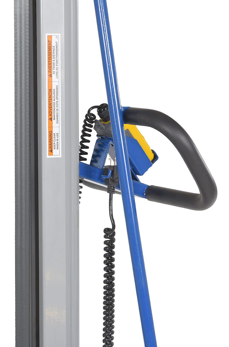 Steel DC Powered Work Positioner 34-1/4 In. x 23-5/8 In. x 70-1/2 In. 330 Lb. Capacity BlueThe Vestil work positioner takes the strain out of any lifting job! While many competitor models are big and bulky, the Vestil positioner is specifically built to go down narrow aisles and around confined spaces. With a platform height that is adjustable with a DC powered lift; getting to the perfect height is quick and easy. Two (2) 3" swivel load casters and two (2) 5" total locking swivel steering polyurethane casters standard. Includes two (2) 12V AGM batteries with an integral battery charger.