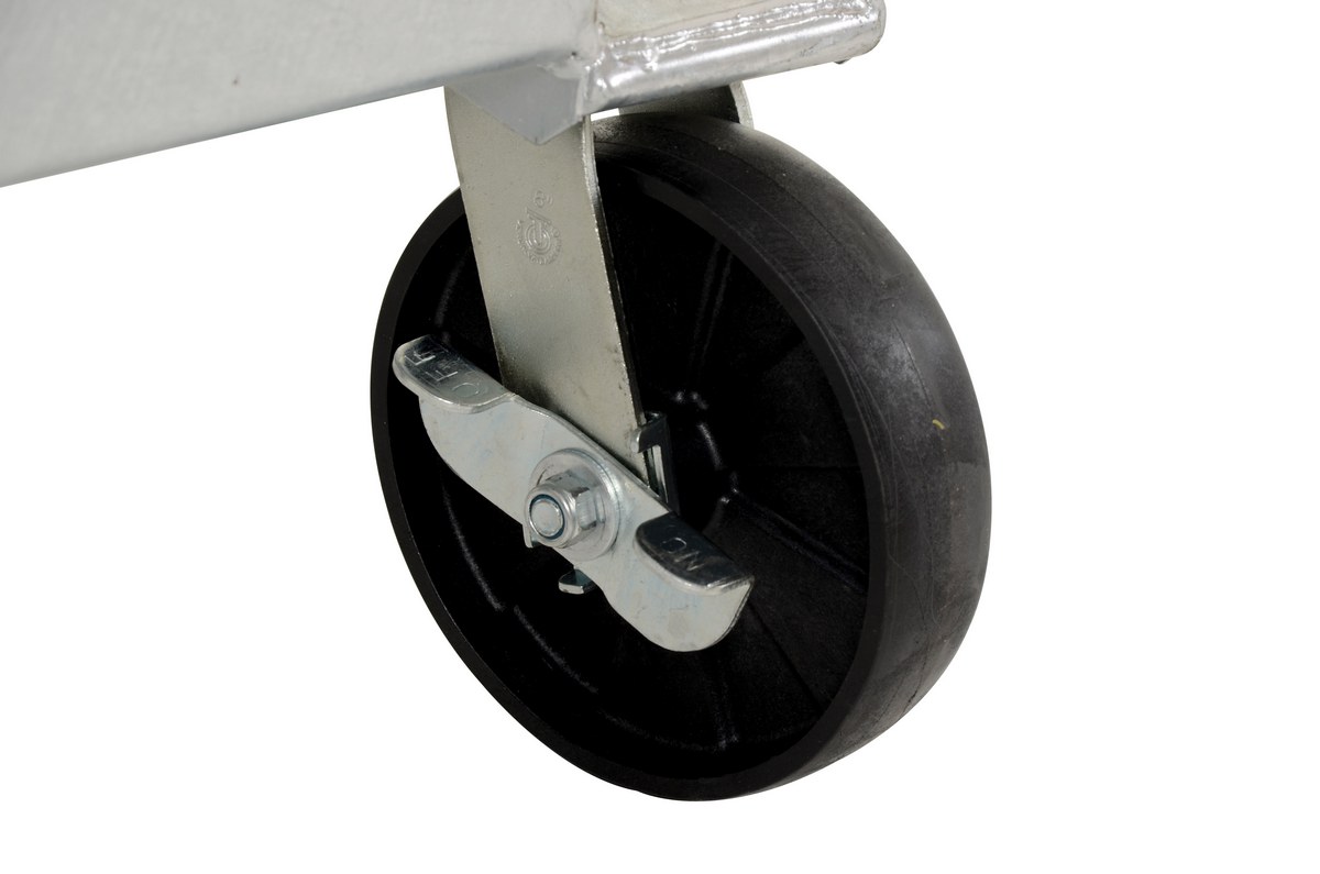 | Caster Quantity/Diameter/Width (in.): (4) 8x2 | Caster Type: (2) Rigid, (1) Swivel, (1) Swivel with Lock | Caster Material: Glass Filled Nylon |