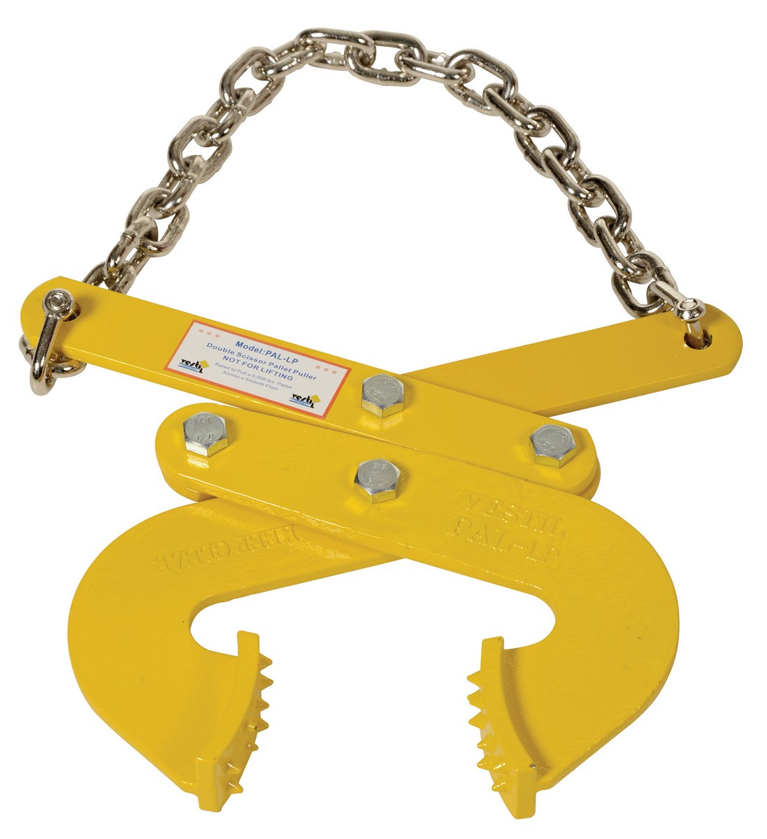 Steel Low Profile Double Scissor Pallet Puller 2 In. x 16-3/4 In. x 13-3/4 In. 5000 Lb. Capacity YellowThe pallet puller is used to pull pallets to rear of trailers for easy fork truck access. Made of rugged steel construction. Heads are self-cleaning and unaffected by wood particles, paint or grease. The one (1) piece curved heads have integral spurs for gripping pallet stringers. The pallet puller is not designed for lifting.