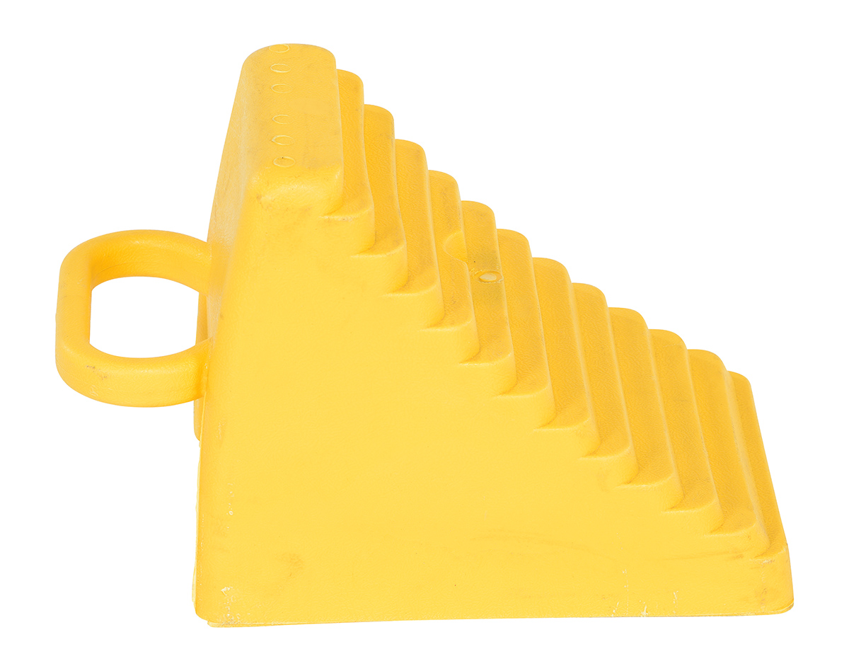 Polyethylene Wheel Chock 5-1/2 In. x 12 In. x 17-1/2 In. 7,000 Lb. Capacity YellowA polyethylene wheel chock helps maintain stability on uncertain surfaces. With a steady foundation, the chocks minimize the chance of movement or jostling. A lightweight design is perfect for carrying and transference from areas to area. With a bright design, the color promotes clear visibility. The chock is compact in size for minimal storage space when not in use.