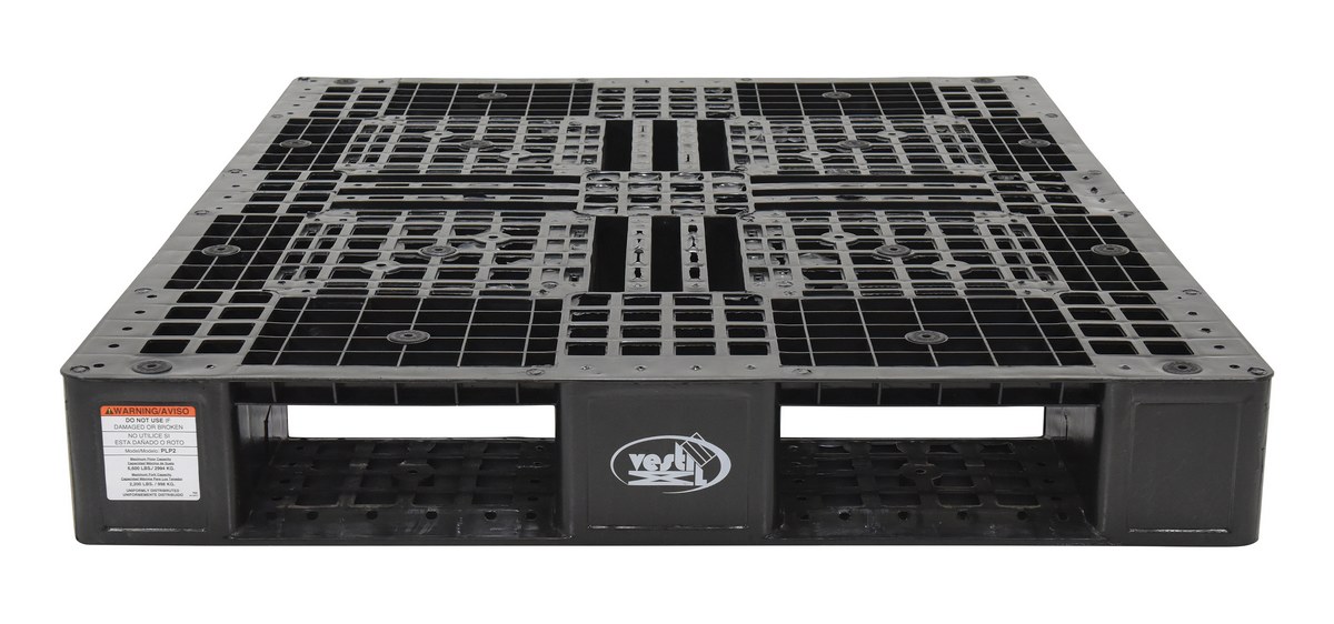 High Density Polyethylene Pallet 39-1/2 In. x 47-3/8 In. x 6 In. 8000 Lb. Capacity BlackPlastic pallets are stackable for efficient storage. Made of high-density virgin polyethylene for long life. Plastic pallets are maintenance free and safer to handle than wooden pallets. Features a four-way entry and serrated deck with holes for drainage. Plastic pallets are ideal for export, pharmaceutical, medical, and food applications.