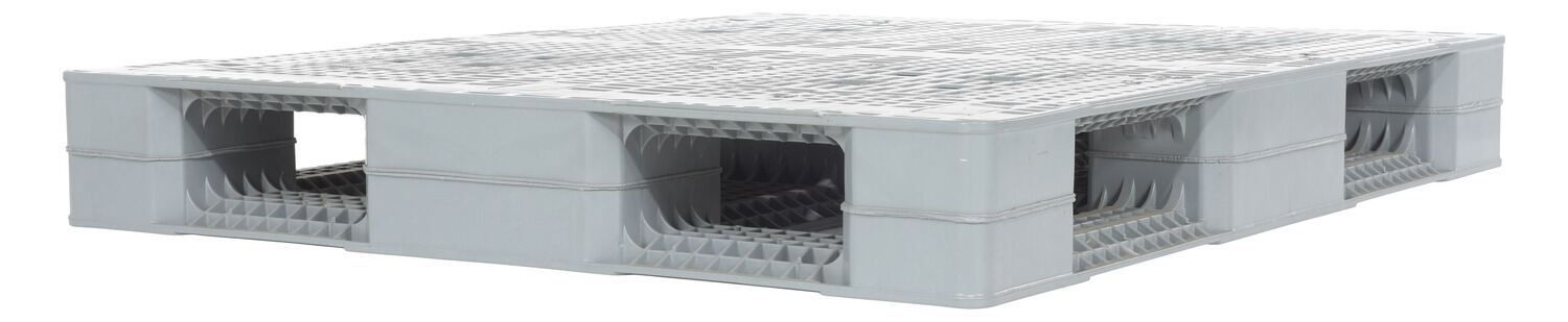 High Density Polyethylene Stackable Pallet/Skid 39 In. x 47-1/4 In. x 5-3/4 In. 13,000 Lb. Static Floor Capacity GrayPlastic pallets are stackable for efficient storage. Made of high-density virgin polyethylene for long life. Plastic pallets are maintenance free and safer to handle than wooden pallets. Features a four-way entry and serrated deck with holes for drainage. Plastic pallets are ideal for export, pharmaceutical, medical, and food applications.
