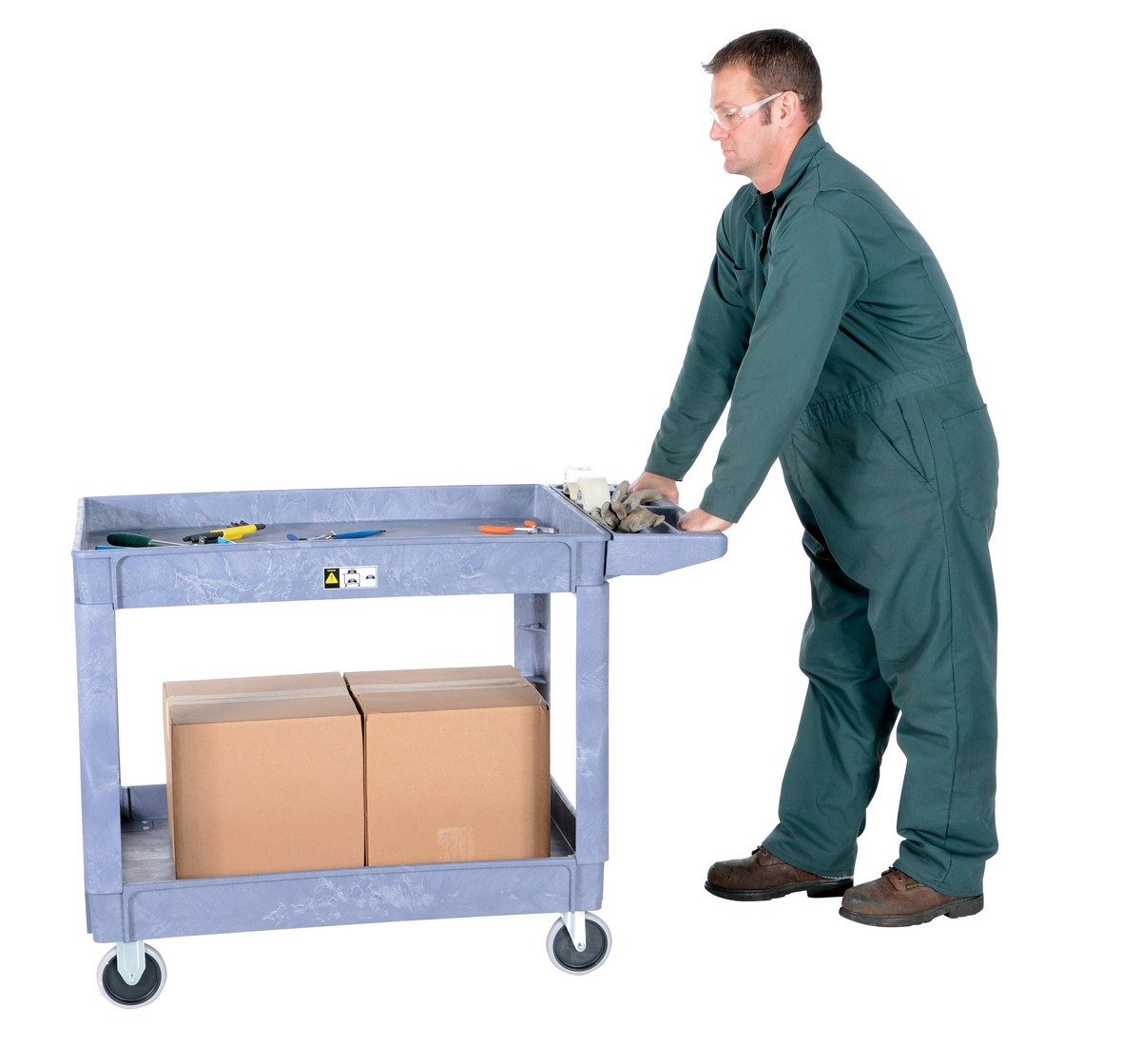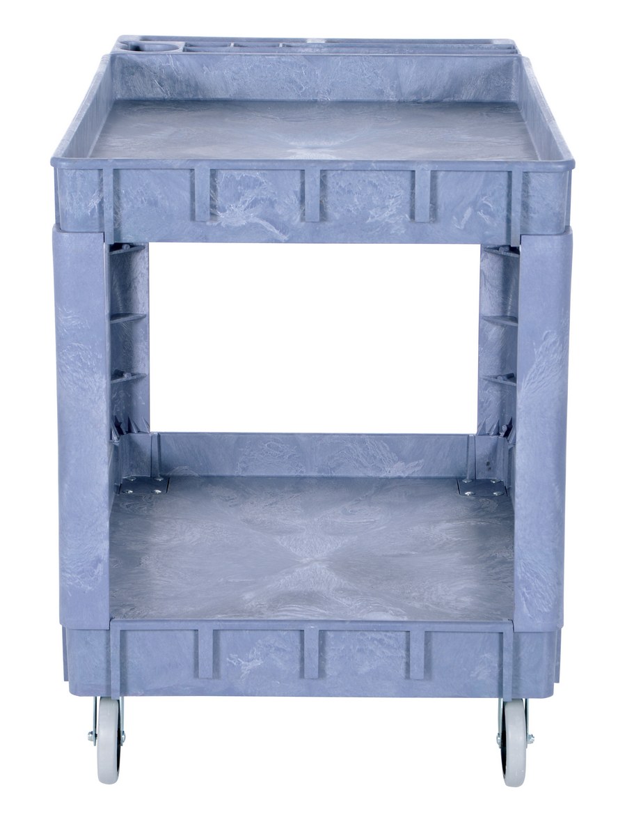 Plastic Utility Service Cart 2 Shelves 45 In. x 25-1/2 In. x 33-1/2 In. 550 Lb. Capacity GrayThis plastic utility service cart is constructed from durable yet lightweight structural foam plastic. Choose the two (2) shelf design to accommodate your application. Deep lips prevent parts from rolling off. Ideal for mail rooms, shipping docks, grocery stores, warehouses, and inventory rooms.