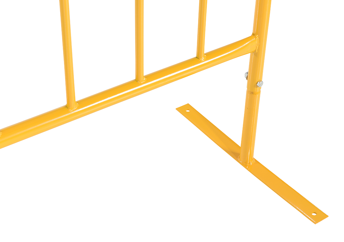 Steel Crowd Control Interlocking Barrier with Flat Feet 47-1/2 In. Length YellowThe Heavy Duty crowd control interlocking barrier is attractive and the functional design is ideal for directing personnel. Interlocking portable railing has many commercial and industrial applications. Upright bars are vertically spaced. Each railing includes connectors to attach multiple units together to form long runs. Units are easy to move to meet changing needs. Barriers have flat and compact design to minimize storage space when not in use.