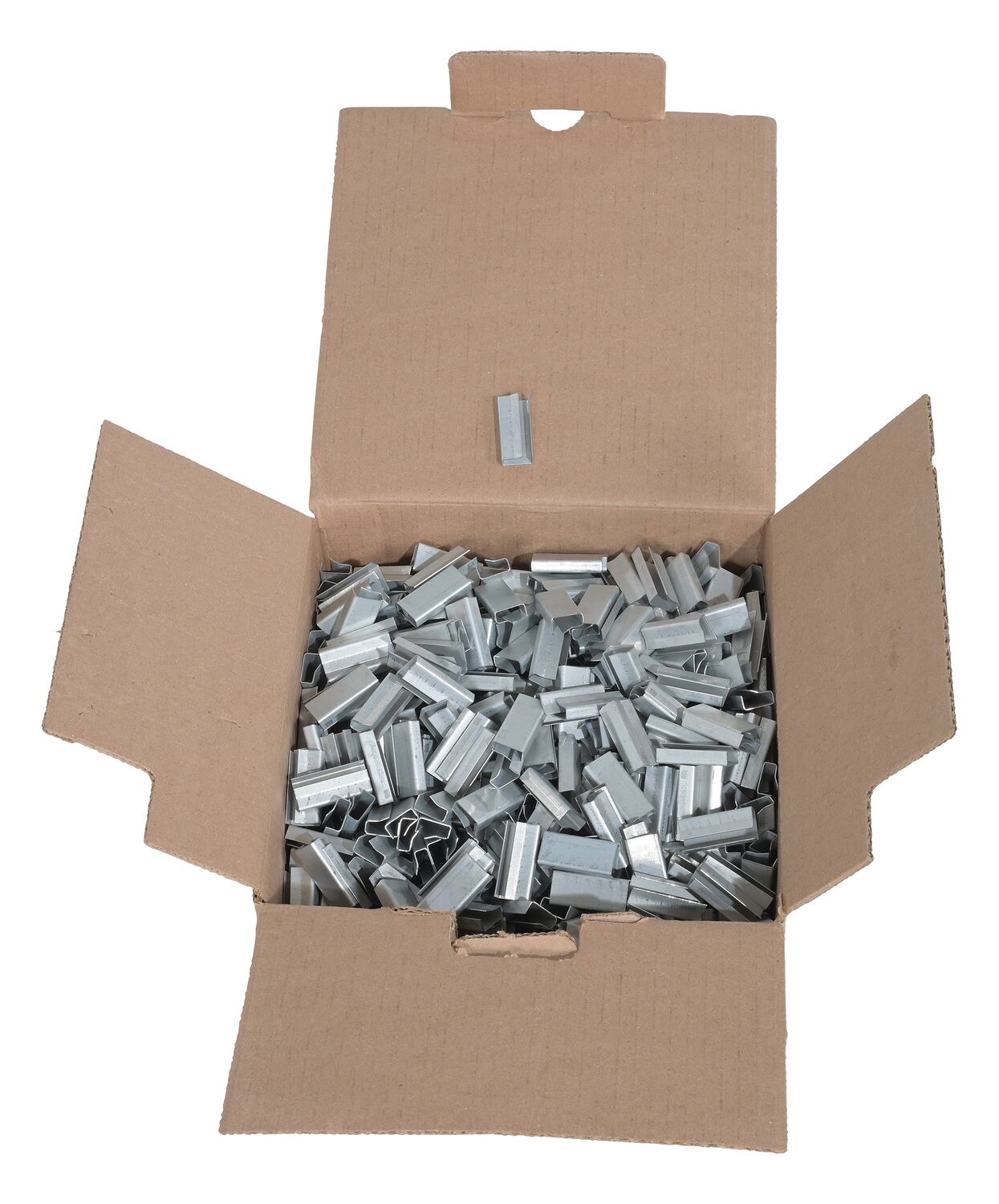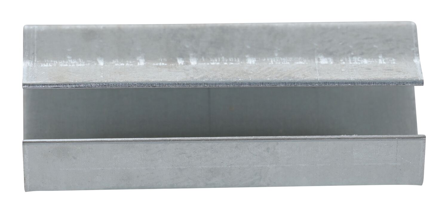 Poly strapping seals are made from galvanized metal with a smooth inside surface which clutches to the poly strapping. These smooth seals offer great seal efficiency.