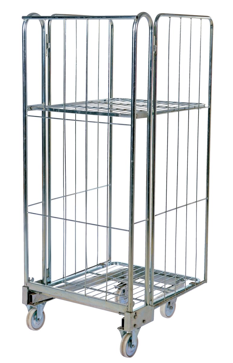 Galvanized Steel Foldable/Nestable Roller Container 2 Shelf 32 In. x 27-1/4 In. x 68-1/4 In. 660 Lb. Capacity GrayThe Foldable/Nestable roller container provides convenient portability between work cells or for delivery or distribution of goods. Unit rolls smoothly on casters. To figure individual uniform shelf capacity divide the number of shelves by total capacity.