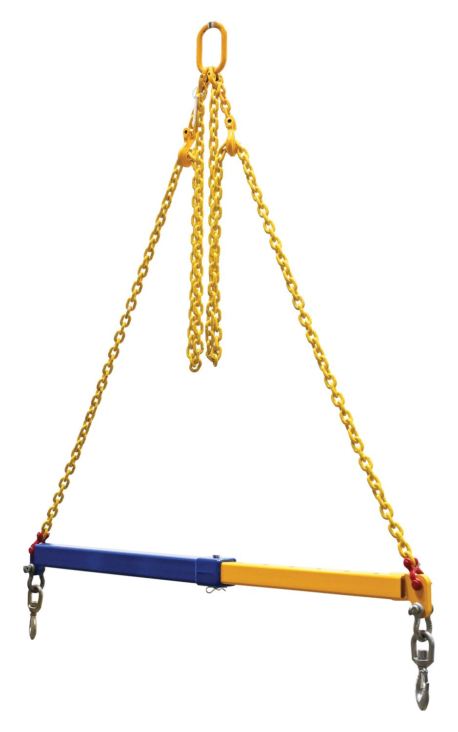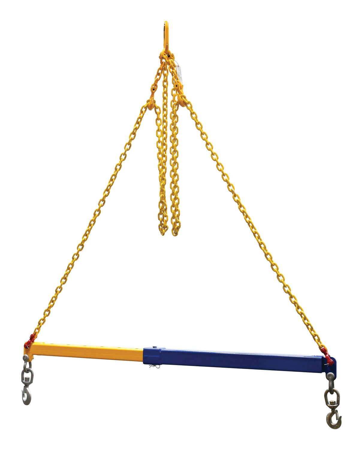 Steel Telescopic Spreader Beam 42-66 In. Length 6,000 Lb. Capacity Blue/YellowWhen a heavy, awkward, sized item needs to be lifted, look for your telescoping spreader beam! This beam can be modified to fit the situation and the users’ needs, quickly and efficiently. Two swivel hooks included, one on each end of the beam. Built of steel with a blue and yellow powder coated finish.