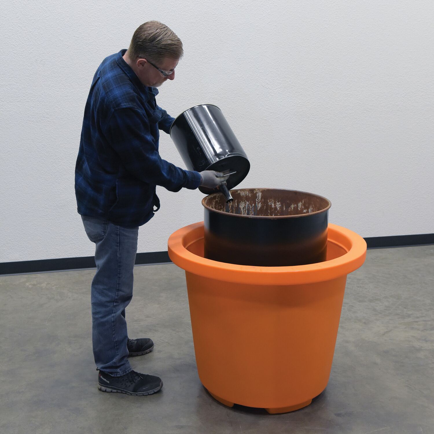 • Drum container is designed to contain leaks and spills