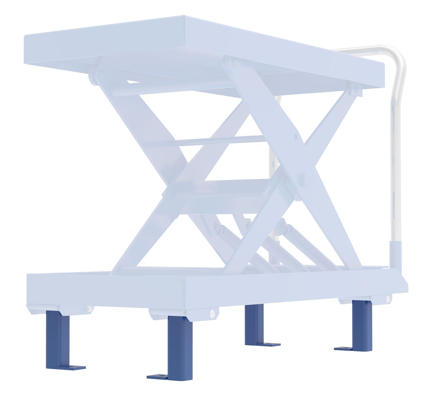Stationary leg sets are a great accessory to a lift carts. By assigning the cart in a specific area the legs set create a solid base to a workplace. The set continues to have all the strength and durability of its portable counterpart, except the ability to roll.