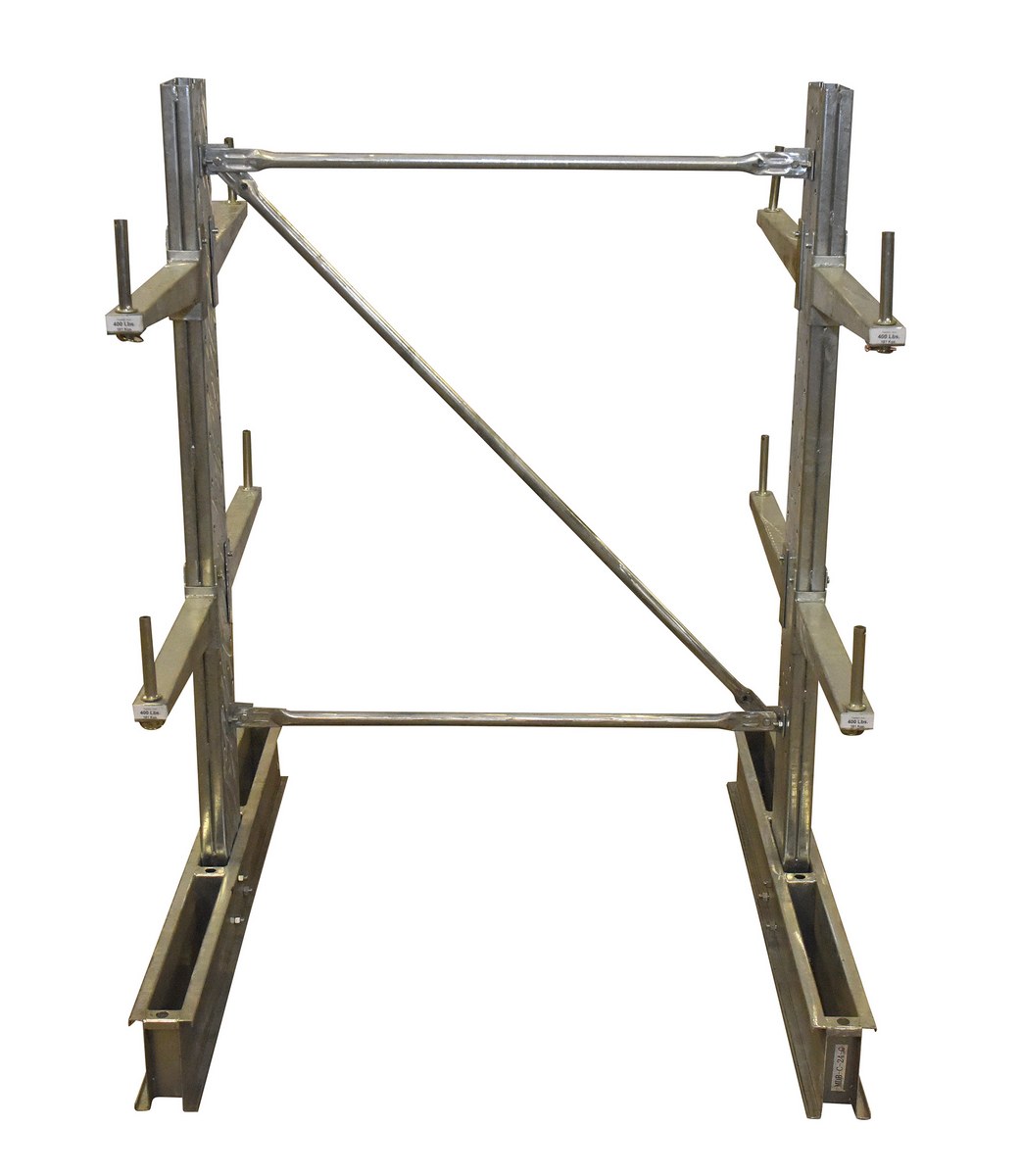 Galvanized Steel Standard Cantilever Double Upright 6 Ft. Height 24 In. Arm Use Length Set 15,400 Lb. Capacity GrayA galvanized cantilever rack kit makes storing and picking large items as simple as can be. A strong steel construction with a galvanized finish makes an already durable product even more robust. The double sided unit can be maneuvered into areas where they are accessible from either side. The rack includes pre-drilled holes for mounting the uprights to the surface of the users choice. Capacity is calculated per level.