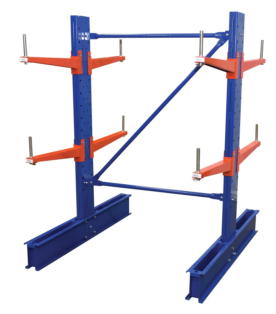 Steel Standard Cantilever Double Upright 6 Ft. Height 24 In. Arm Use Length Set 15,400 Lb. Capacity BlueThe Cantilever racks are ideal for eliminating storage problems. The steel constructed design allows for quick and efficient handling by forklift or by hand. The rack includes pre-drilled holes, adjustable arms for access to variable heights, and front lipped arms to prevent items from falling. Available in both single sided and double sided units with the option of standard, medium, or heavy duty construction.