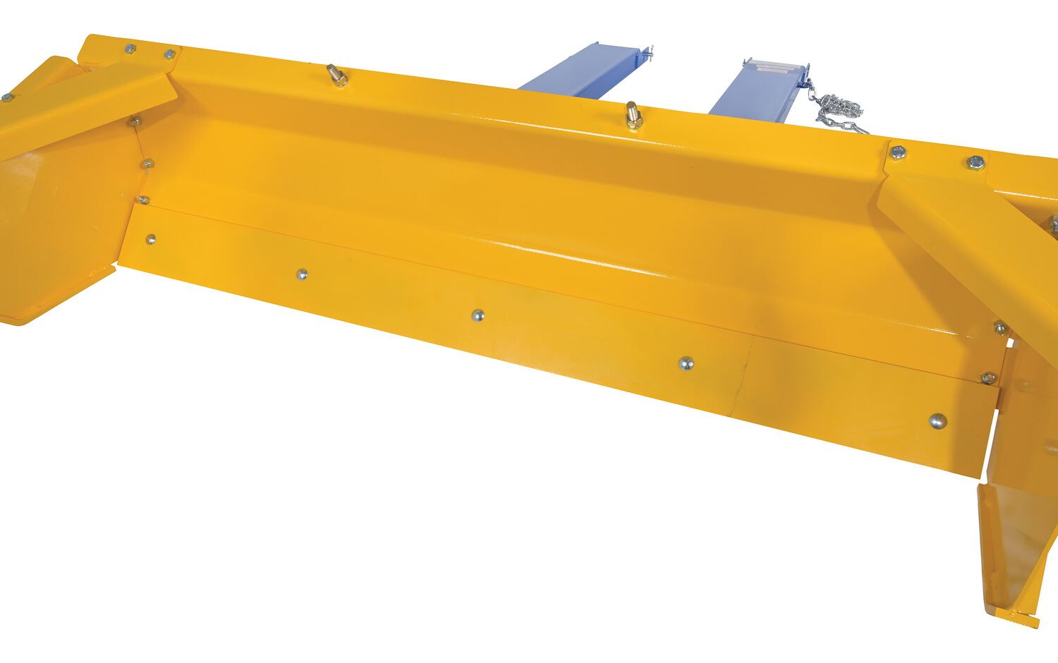 Steel Fork Mount Snow Pusher 72" Blade Blue/YellowWhen snow needs moved and removed, look no further than the fork truck snow pusher. The unique design attaches to fork truck forks, so no power supply is needed! With a manual pivot mechanism, blade rotation to both the right and left are simple. Steel construction with baked in powder coat finish for added toughness.