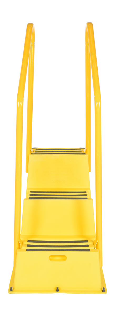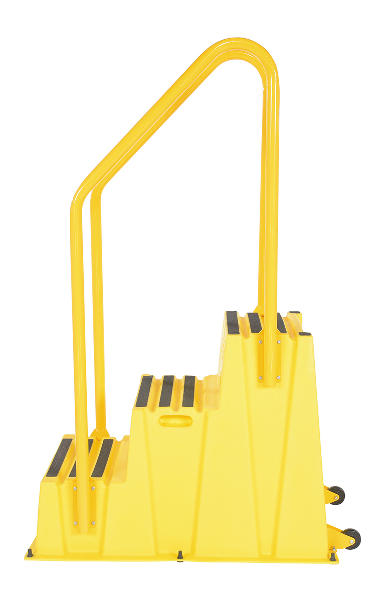 Polyethylene Nestable with Handrails Casters 3 Step 500 Lb. Capacity YellowA poly step stool is a great asset for on the go or in a permanent setting. A lightweight design with front and side cutout handles, allow the user to easily transfer the stool to a preferred spot. The taped step surfaces ensure safe footing while traversing up and down the steps. Includes bolt on handrail and casters. The hand rails height allows the unit to be pushed or pulled into the desired position, minimizing bending and twisting by the user. Steps can be nested to minimize footprint when not in use.