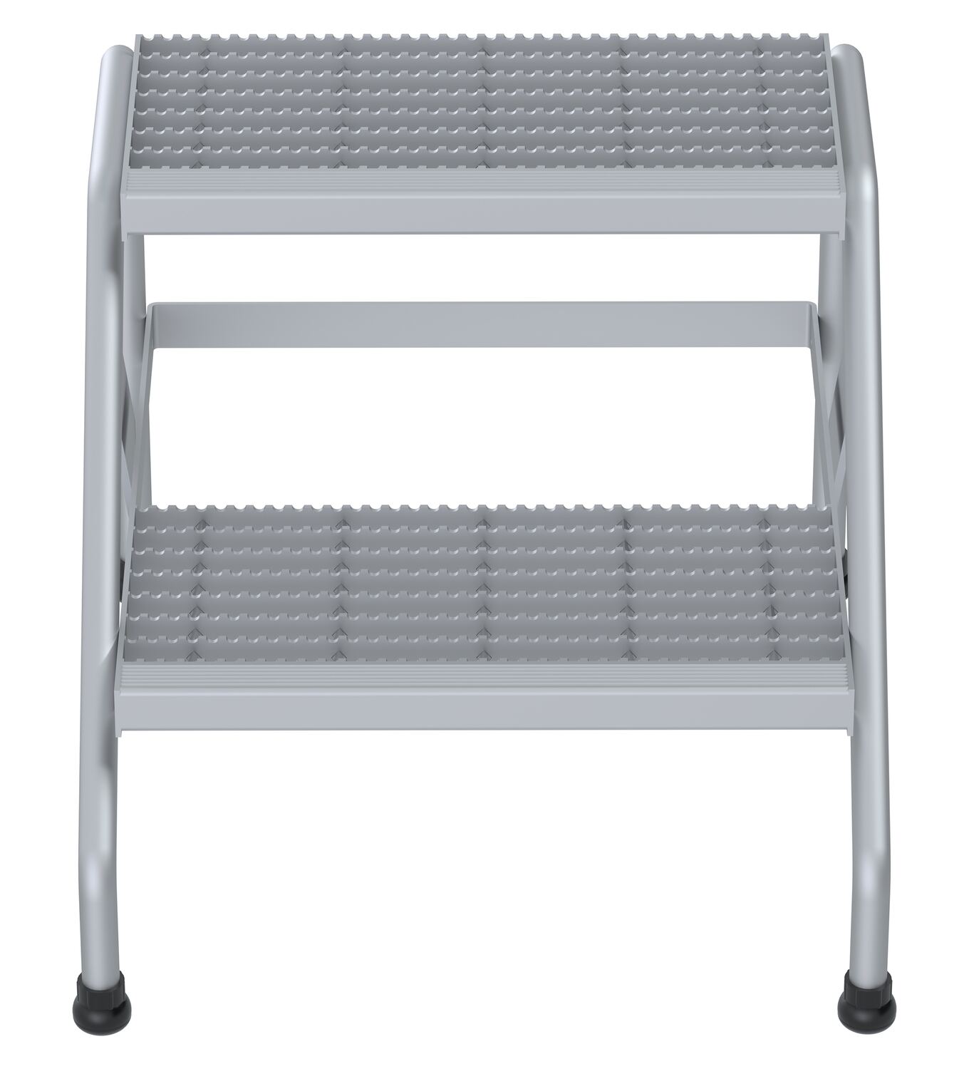 Aluminum 2 Step Stand 500 Lb. Capacity SilverThis Aluminum step stand is ideal for industrial or commercial applications. It is lighter than comparable steel models. Open step design includes extra heavy duty serrated surface for traction. With rubber tipped legs, this step ladder is ideal for use on many types floors.