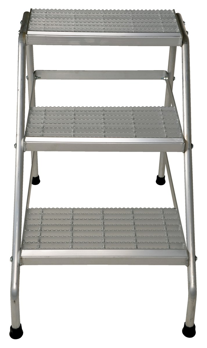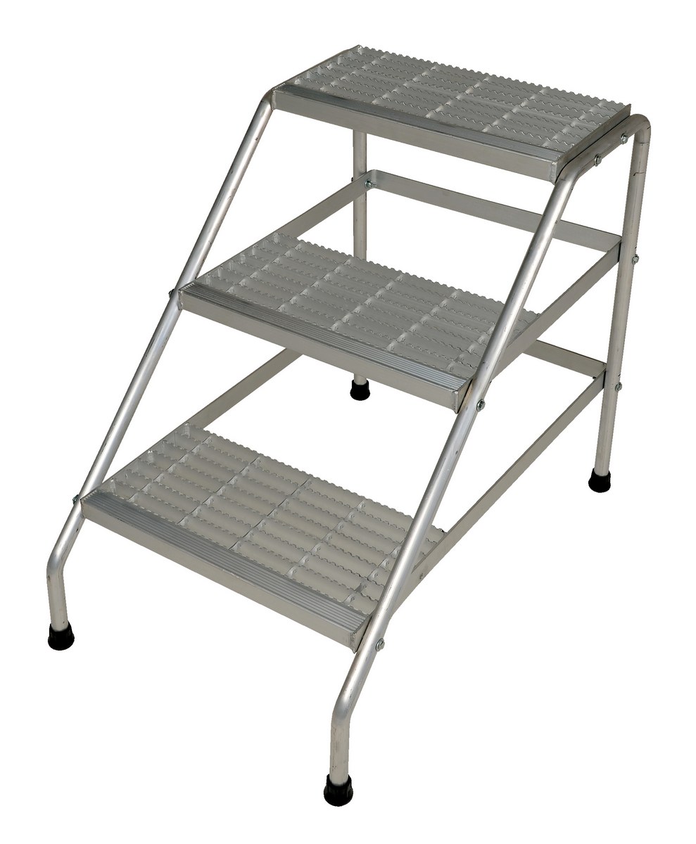 Aluminum 3 Step Knock Down Stand 500 Lb. Capacity SilverThis Aluminum step stand is ideal for industrial or commercial applications. It is lighter than comparable steel models. Open step design includes extra heavy duty serrated surface for traction. With rubber tipped legs, this step ladder is ideal for use on many types floors.