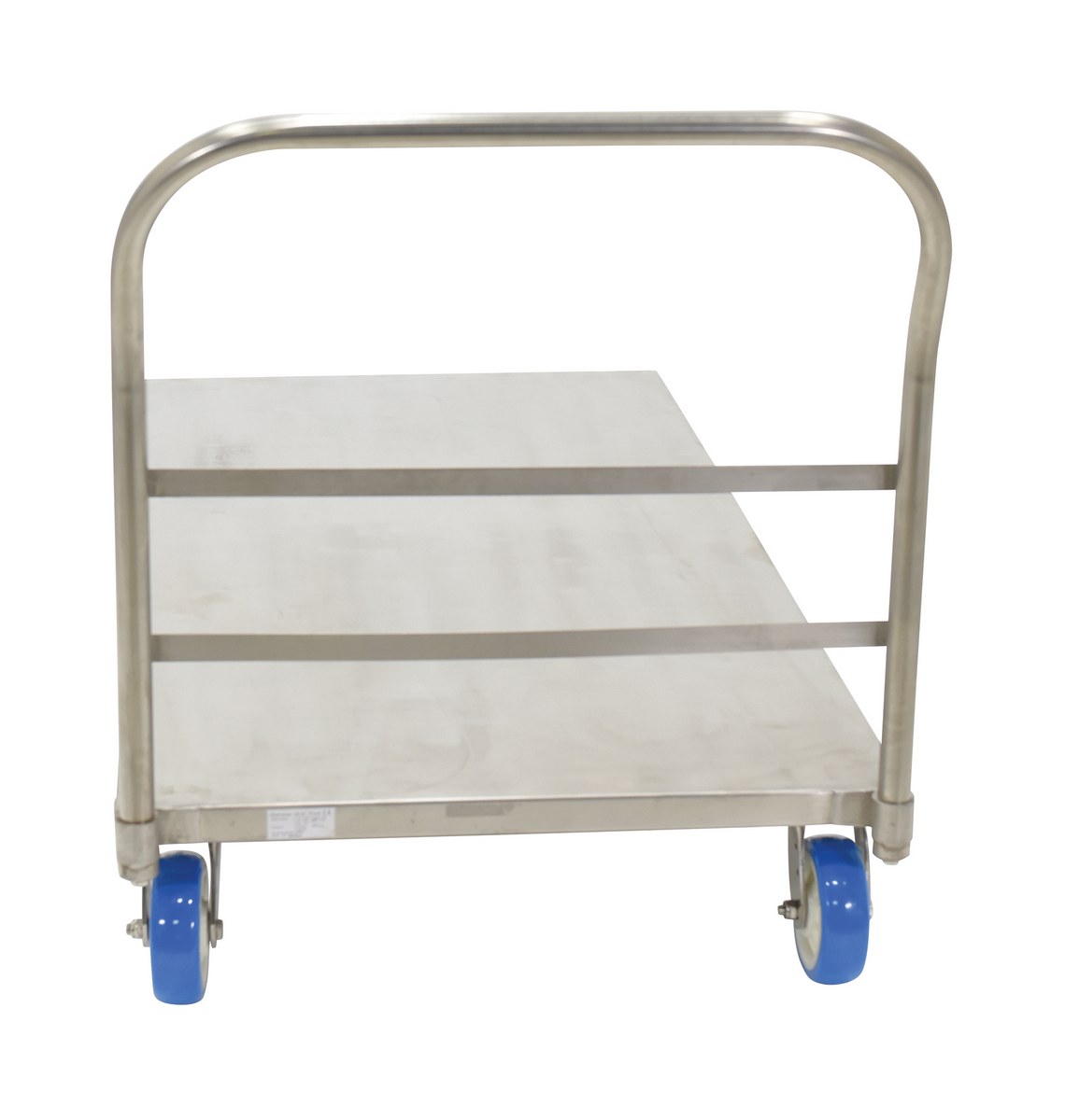 201 Stainless Steel Platform Truck 30 In. x 60 In. Deck 2,000 Lb. Static Capacity SilverHigh quality Stainless Steel platform trucks are highly suited for clean room environments, applications with food handling, and pharmaceutical industries. Completely formed from 201 grade stainless steel sheet and tube. Corrosion resistant, non-wearing, temperature resistant, completely hygienic stainless steel roller bearings. 100% Stainless steel platform trucks.